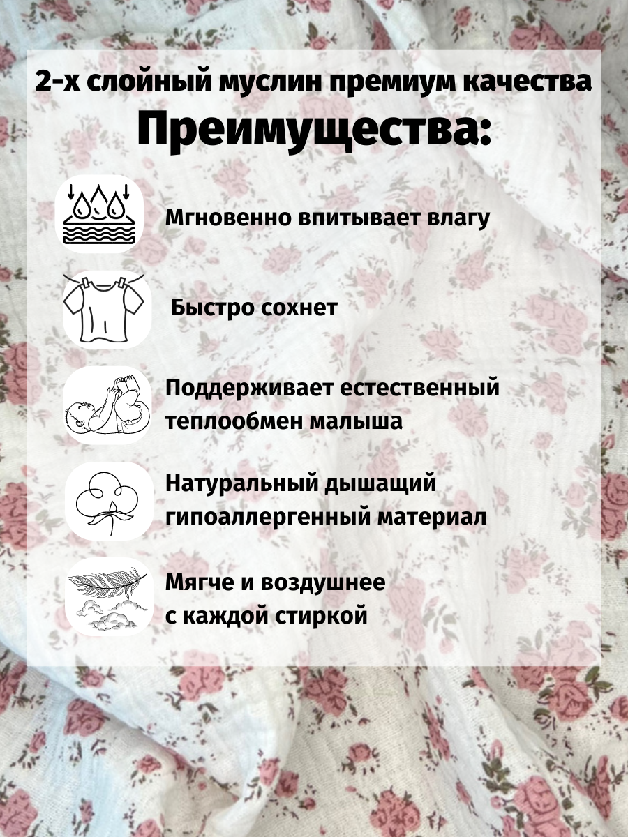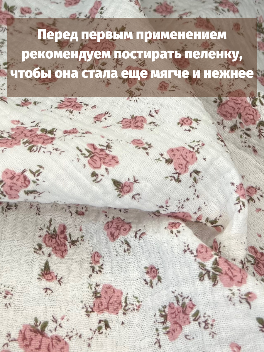 Муслиновая пеленка для новорожденных Kiddie Sofi белая с розовыми цветочками, 130х90 см информация: