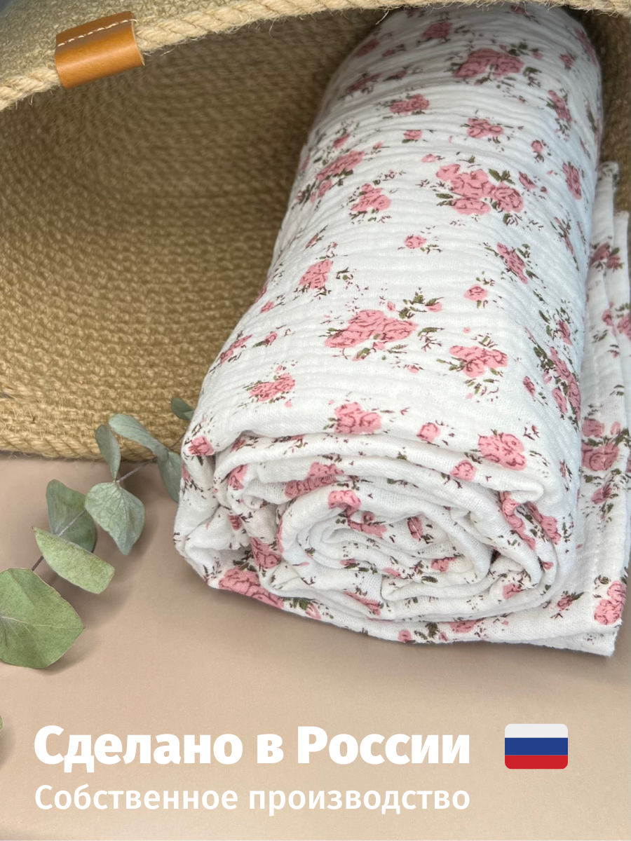 10 цен на Муслиновая пеленка для новорожденных Kiddie Sofi белая с розовыми цветочками, 130х90 см