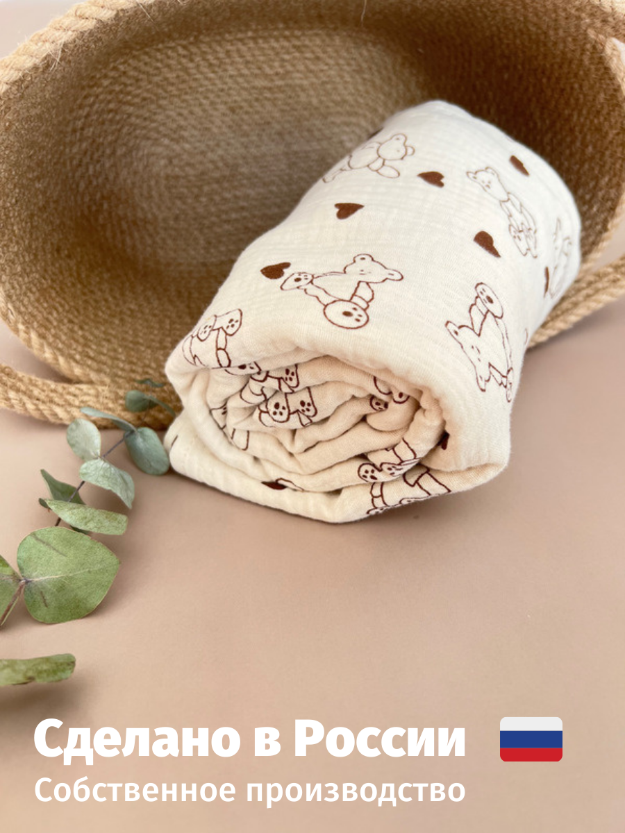 Муслиновая пеленка для новорожденных Kiddie Sofi бежевая с маленькими мишками и сердечками, 130х90 см информация: