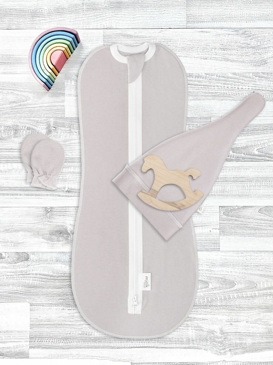 Комплект для новорождённого Mjolk Fog {пеленальный кокон, шапочка, антицарапки} (3-6кг)
