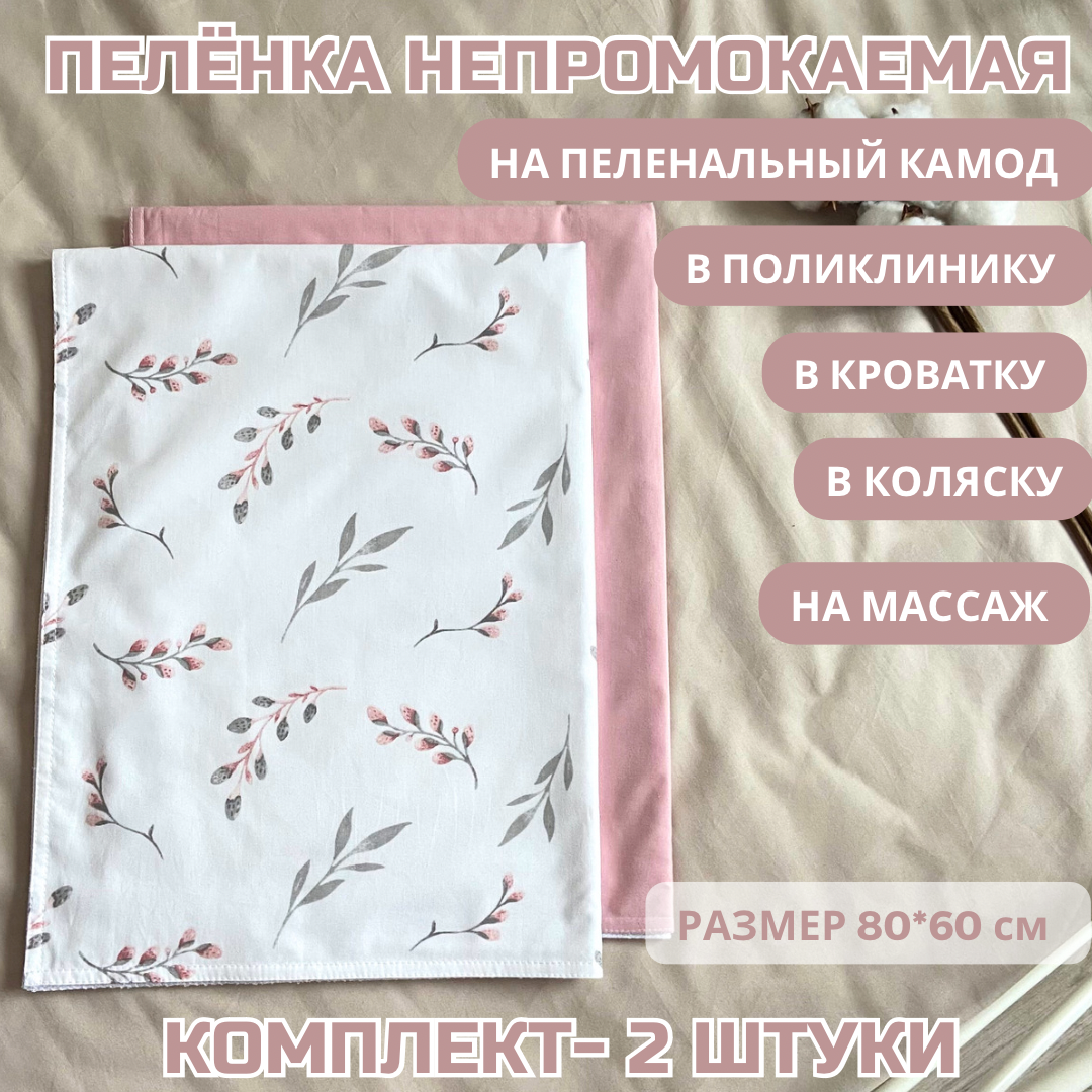 Непромокаемые пеленки для детей, размер 60х80 см, 2 штуки, ранфорс 1 799 ₽