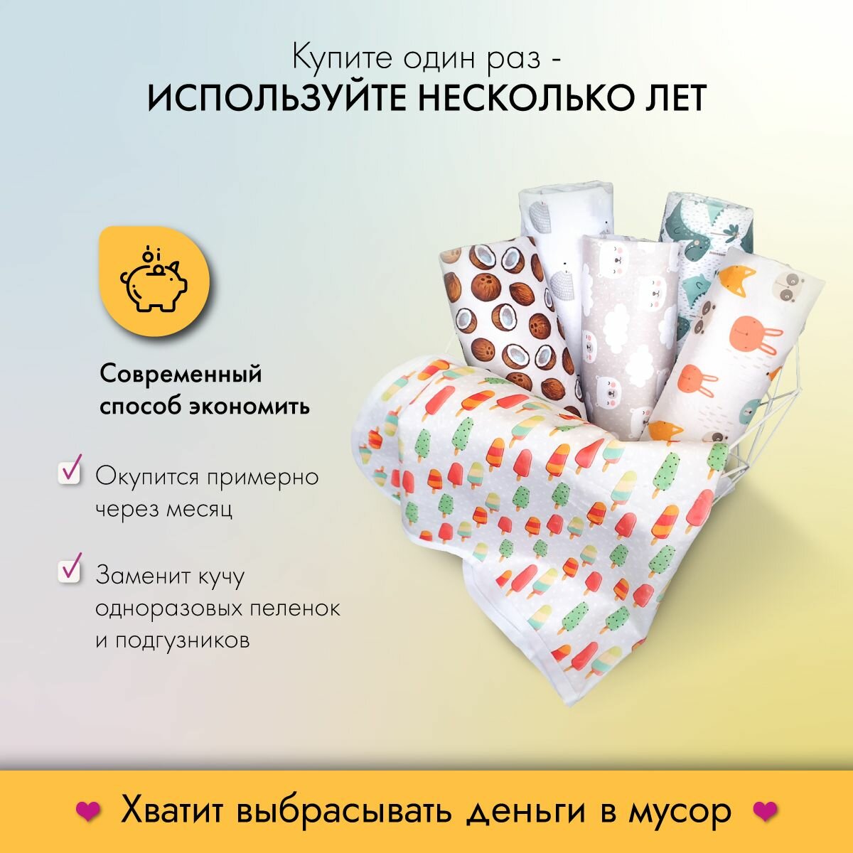 Пеленка текстильная многоразовая непромокаемая хлопок махра клеенка 68х80 см Owl&EarlyBird, набор 2 штуки