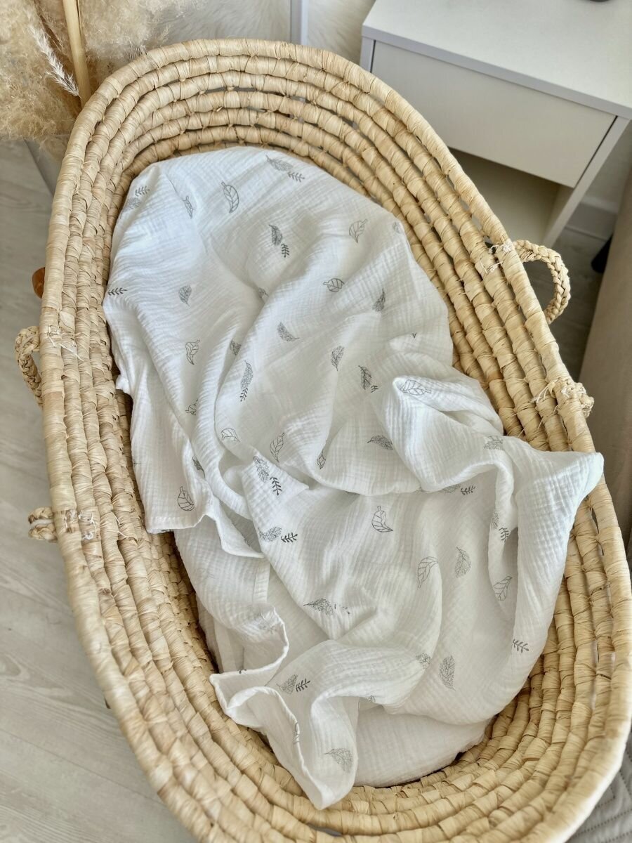 Муслиновая пеленка жатый жатка Листики на белом информация: