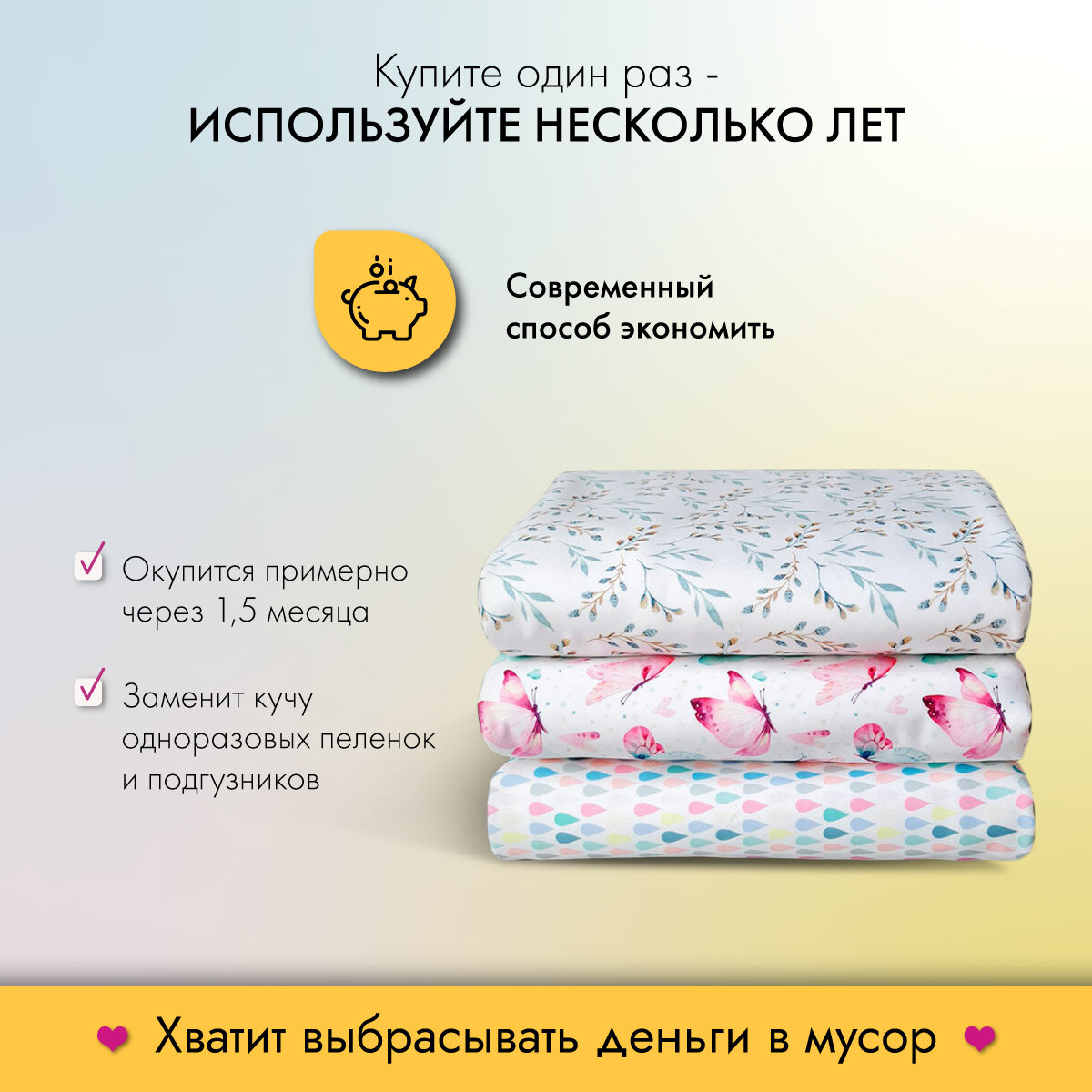 Пеленка текстильная многоразовая непромокаемая хлопок махра клеенка 68х80 см Owl&EarlyBird, набор 2 штуки