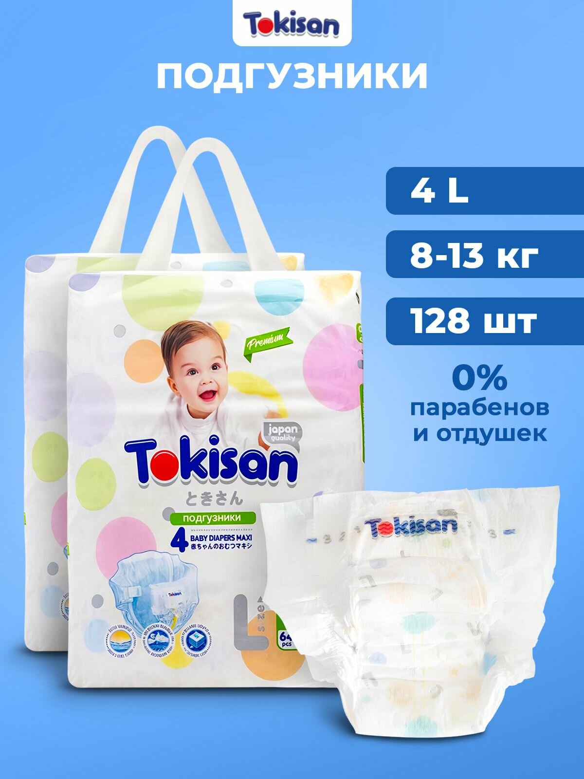 Подгузники трусики Tokisan 128 шт, японское качество, 4 размер L, 8-13 кг, детские, дневные и ночные информация:
