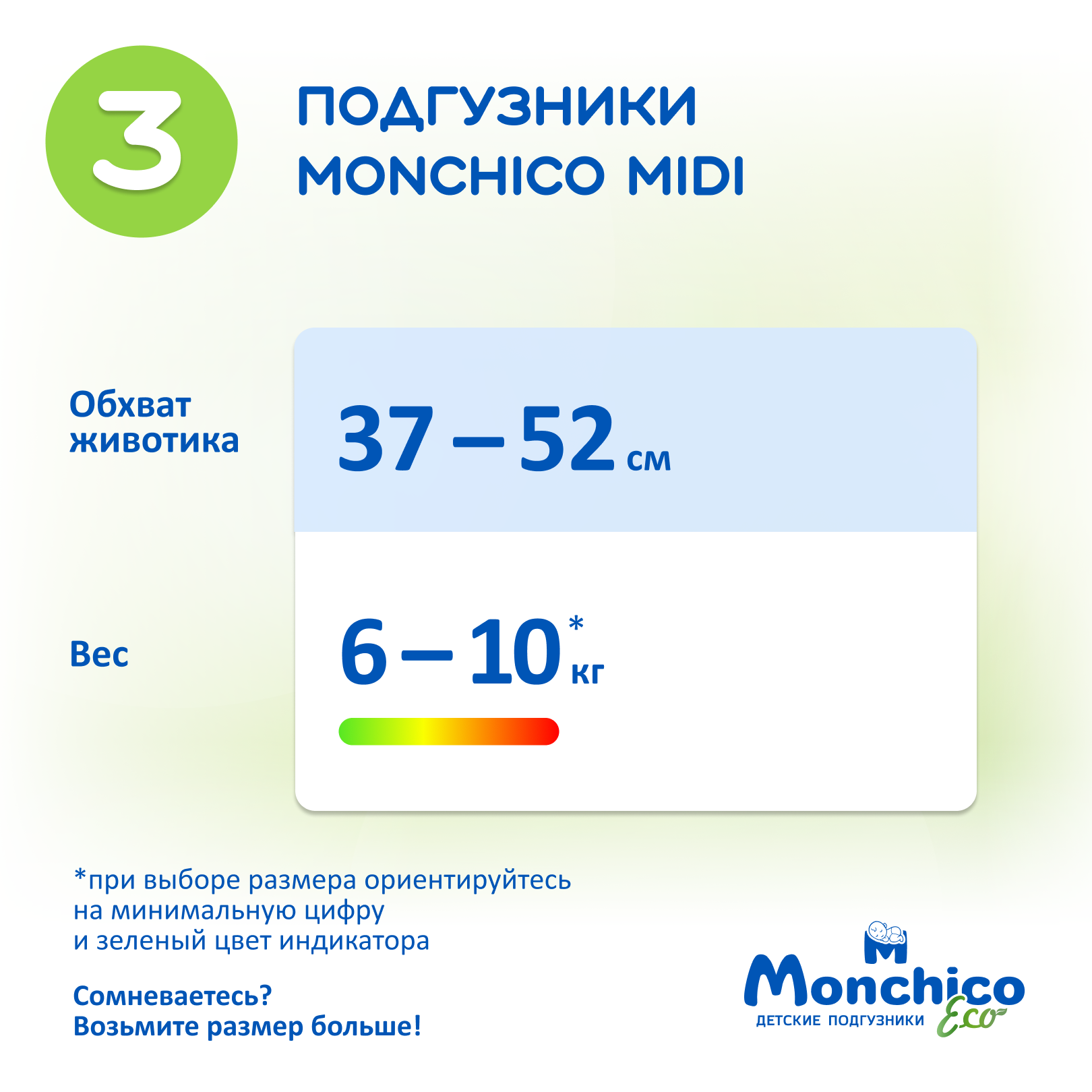 10 цен на Подгузники детские Monchico / Мончико размер 3 (M) от 6 кг до 10 кг упаковка 64 шт на липучках