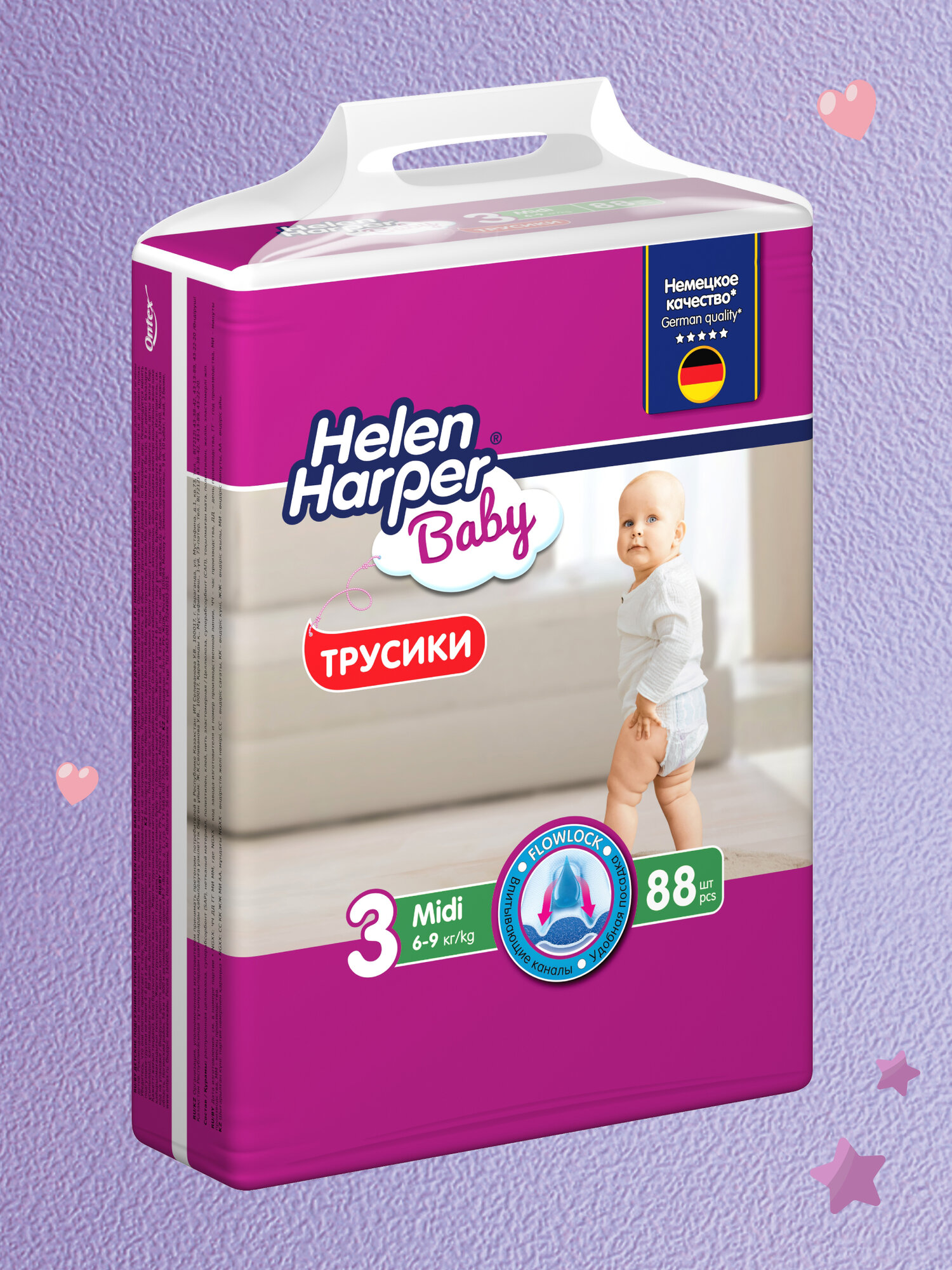 10 цен на Подгузники-трусики 3/M, 6-9 кг/ 88 шт / Helen Harper Baby/ размер 3 Midi/ детские / с мягким пояском