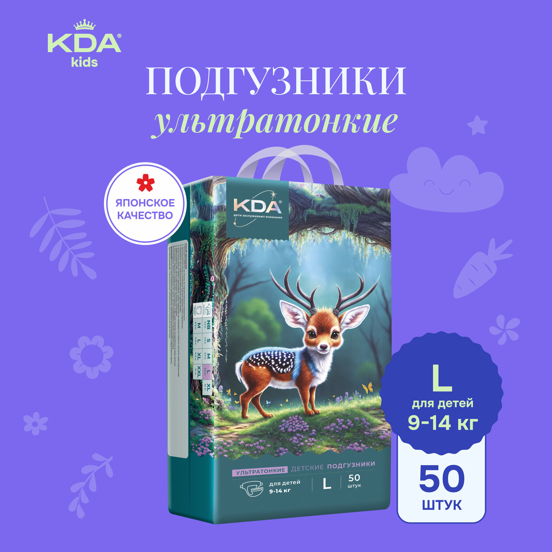 Подгузники KDA Kids ультратонкие, размер L (9-14 кг), 50 шт. информация: