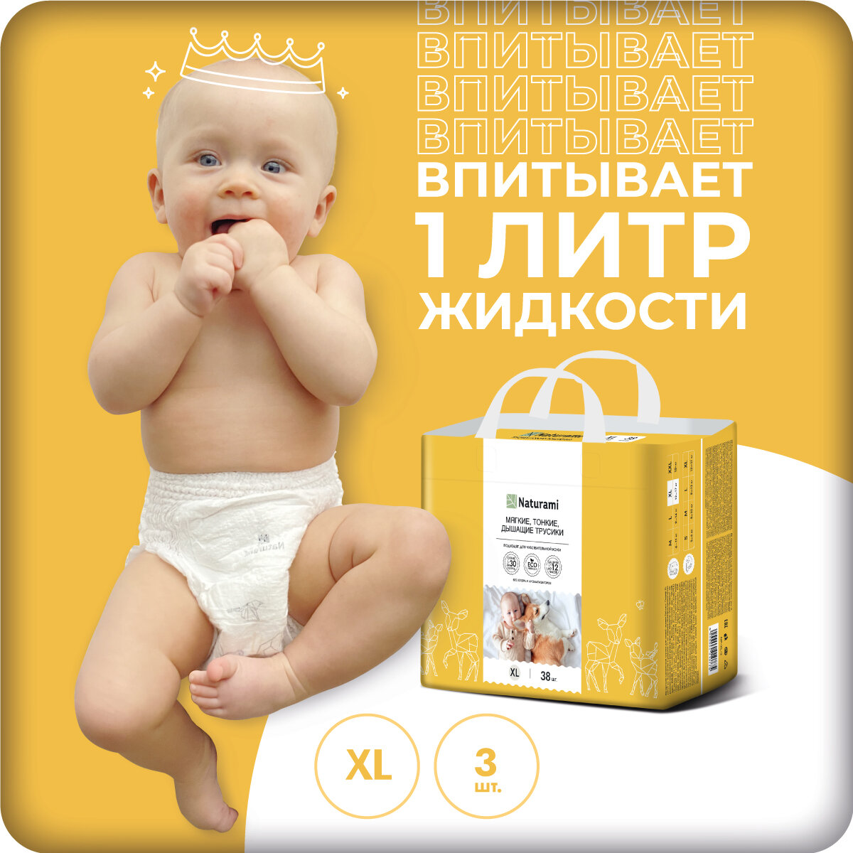 Подгузники-трусики Naturami детские для новорожденных малышей XL (12-17 кг), 5 размер, 38 шт 1 730 ₽