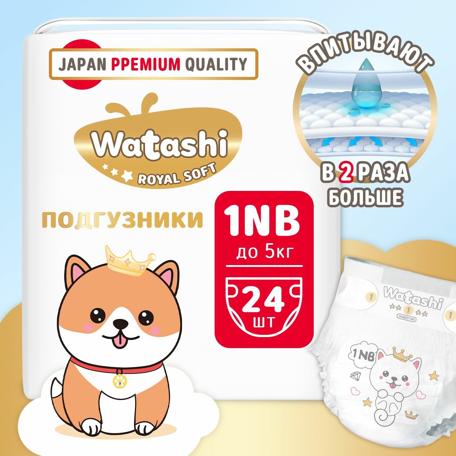 Подгузники для новорожденных 1 NB размер до 5 кг, 24шт, WATASHI Royal Soft информация: