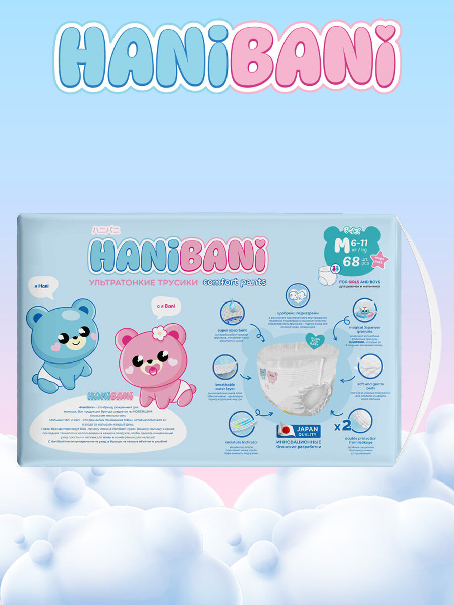 10 цен на Подгузники трусики размер 3 М детские, HANIBANI Comfort (6-11 кг), 68 шт
