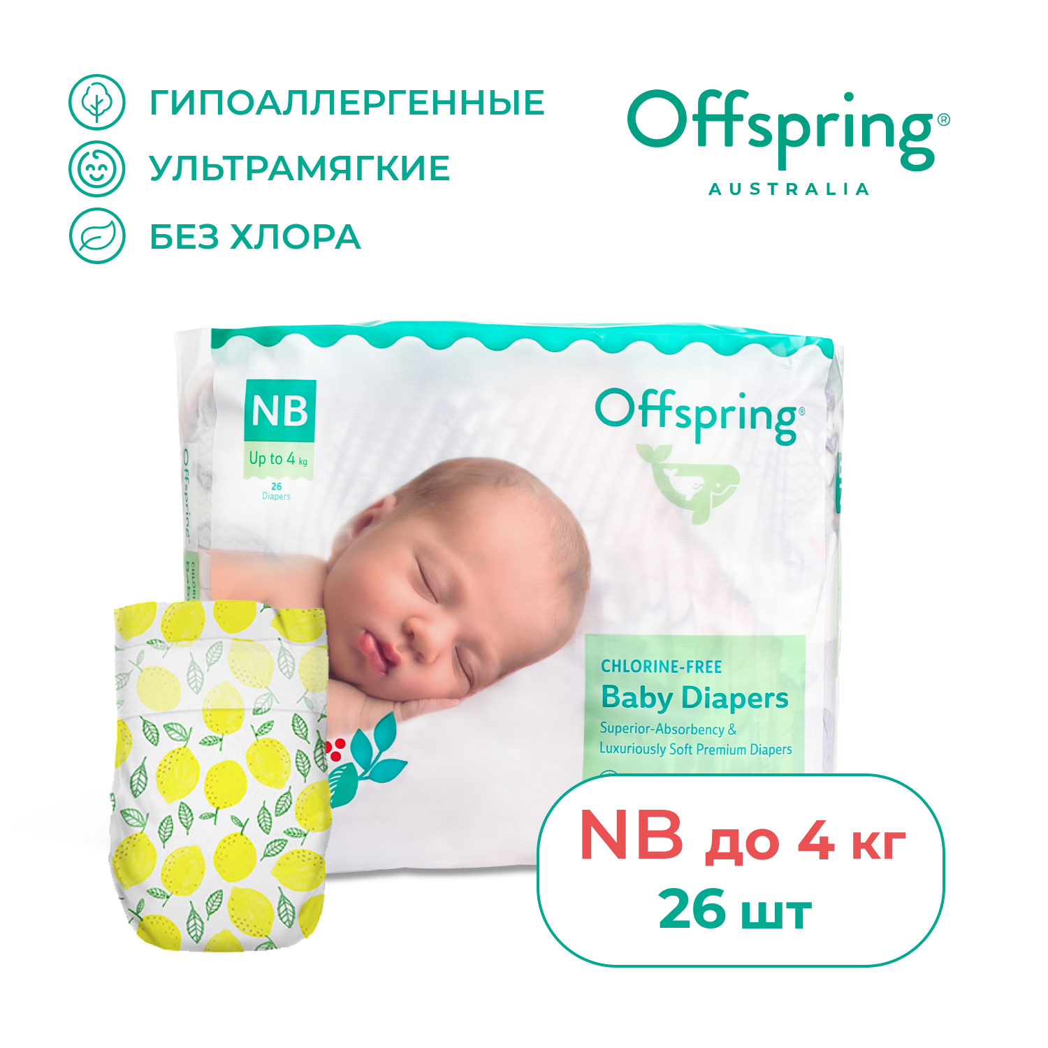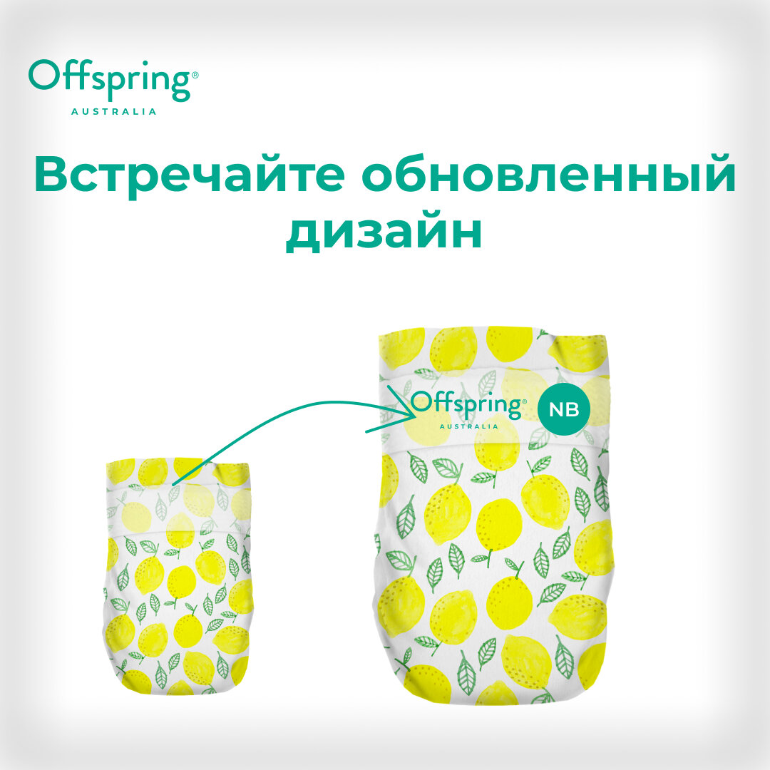 10 цен на Offspring подгузники, NB 2-4 кг. 26 шт. расцветка Лимоны
