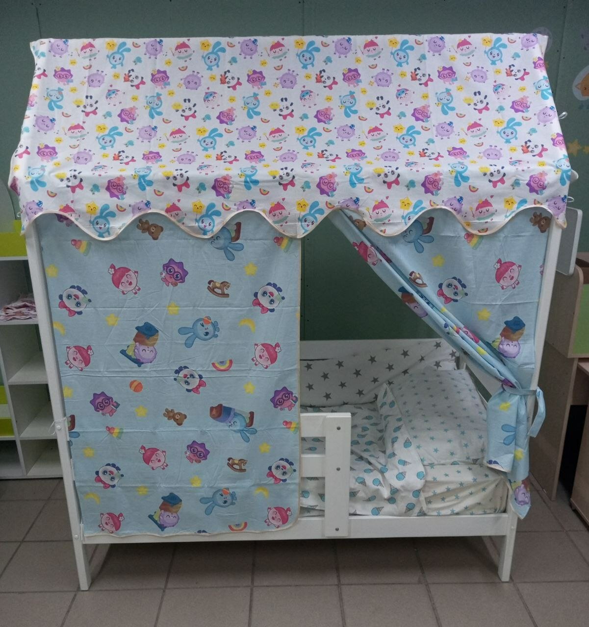 Отзывы на Комплект Крыша - Балдахин и Шторки. Текстиль (100% хлопок) Для кровати Домика 160 х 80/160 х 70 см (Шарики 2)