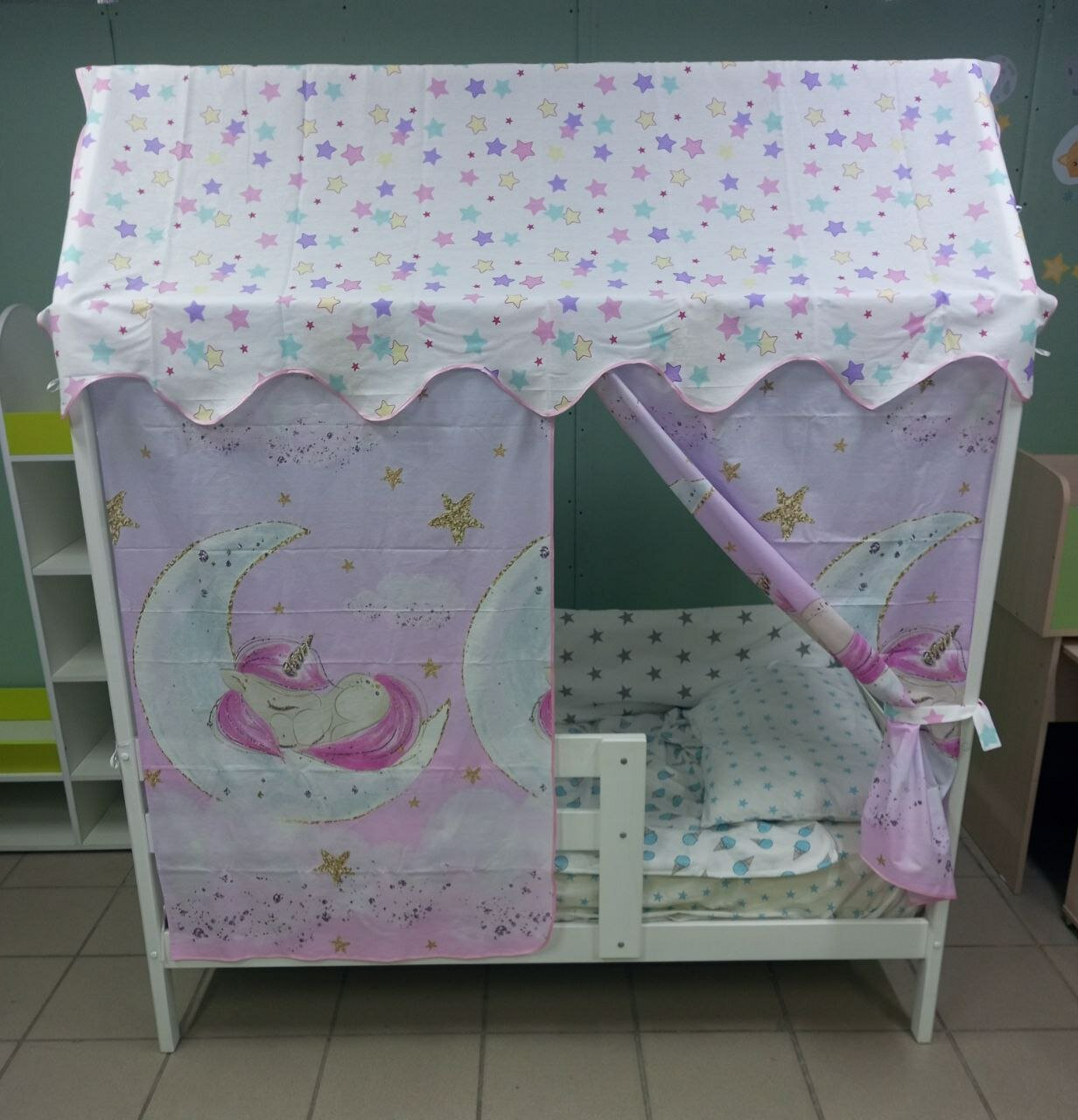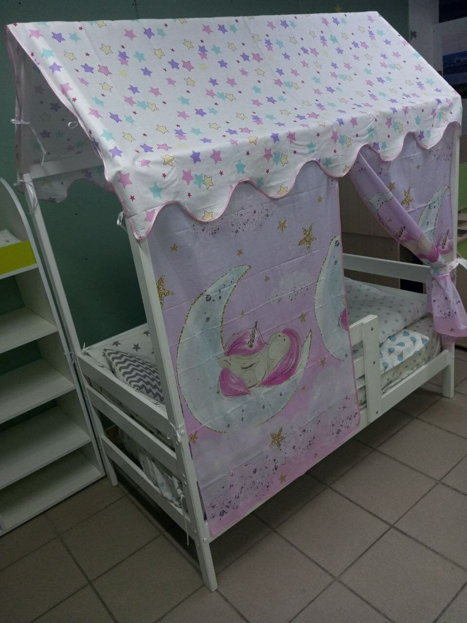 10 цен на Комплект Крыша - Балдахин и Шторки. Текстиль (100% хлопок) Для кровати Домика 160 х 80/160 х 70 см (Сказка)