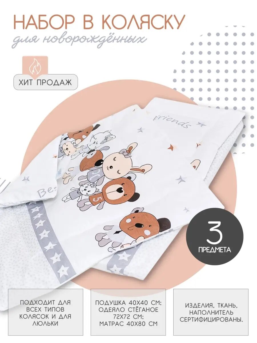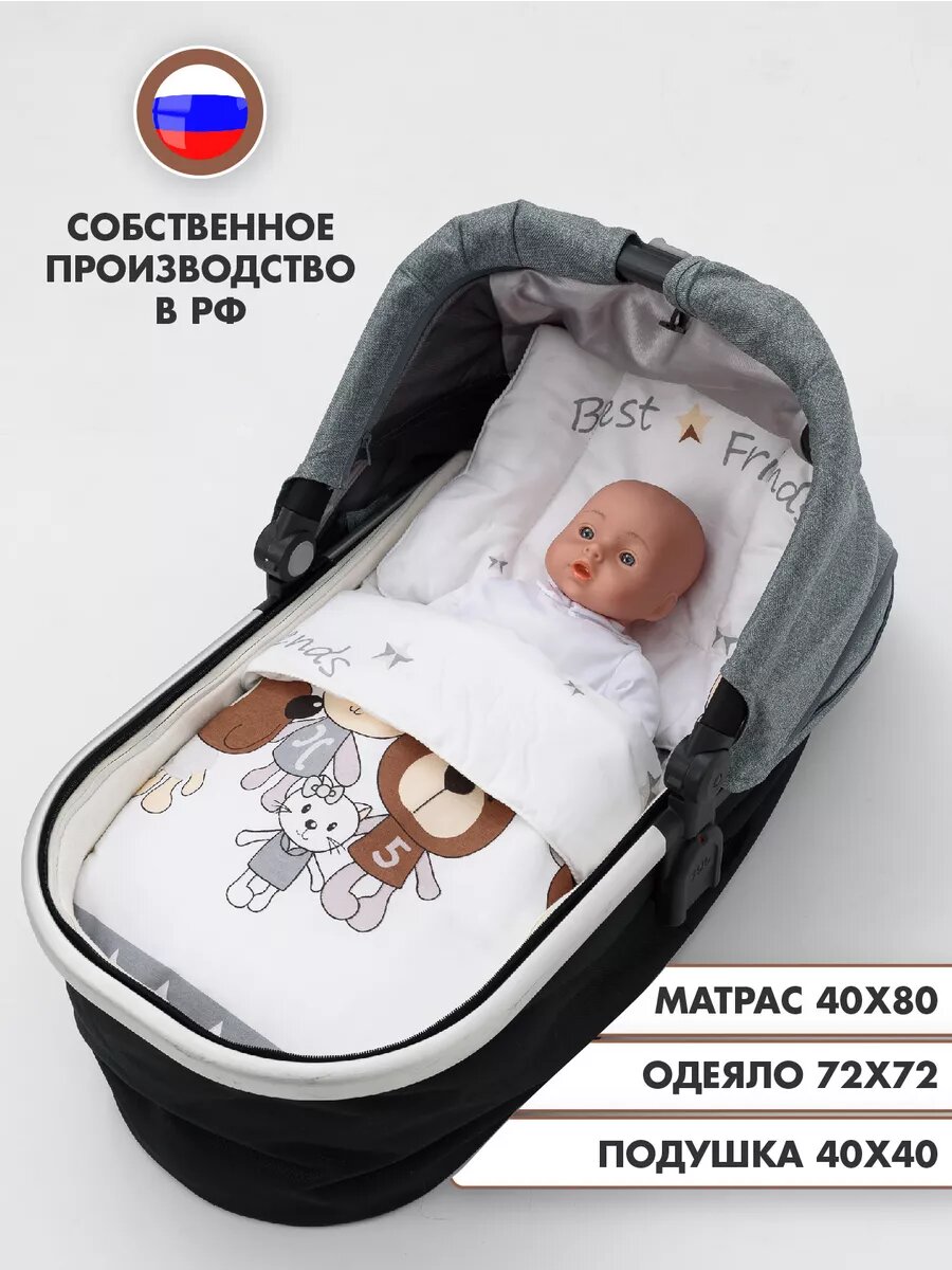 Комплект в коляску Мой Ангелочек, для новорожденных, 100 % хлопок, гипоаллергенный, серый 1 931 ₽