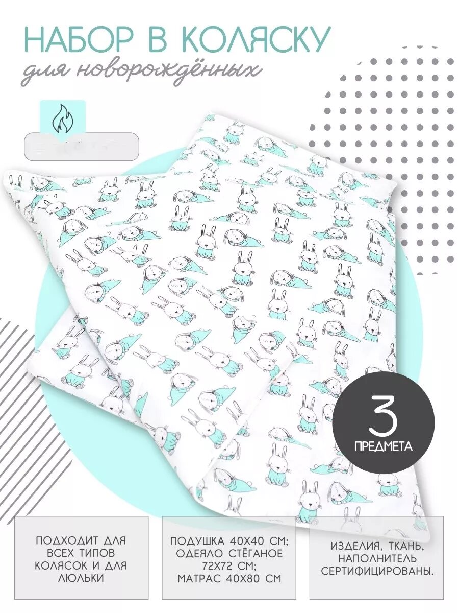 Комплект в коляску Мой Ангелочек, для новорожденных, наполнитель матраса холлокон, 100% хлопок 1 931 ₽