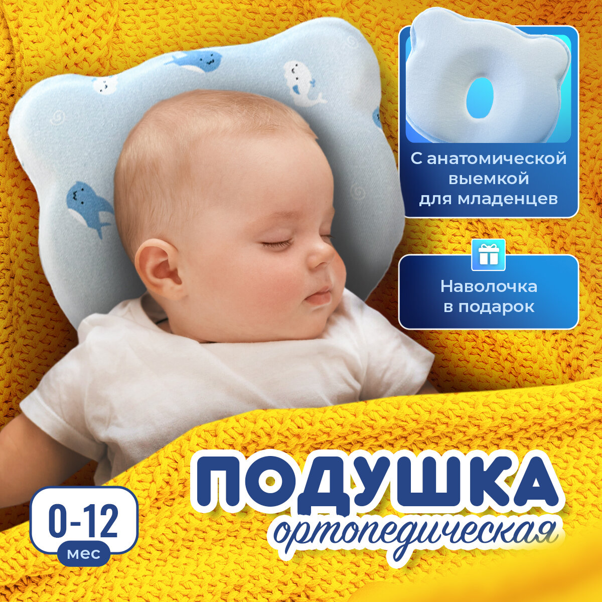 Подушка ортопедическая для новорожденных с эффектом памяти, «кит» информация: