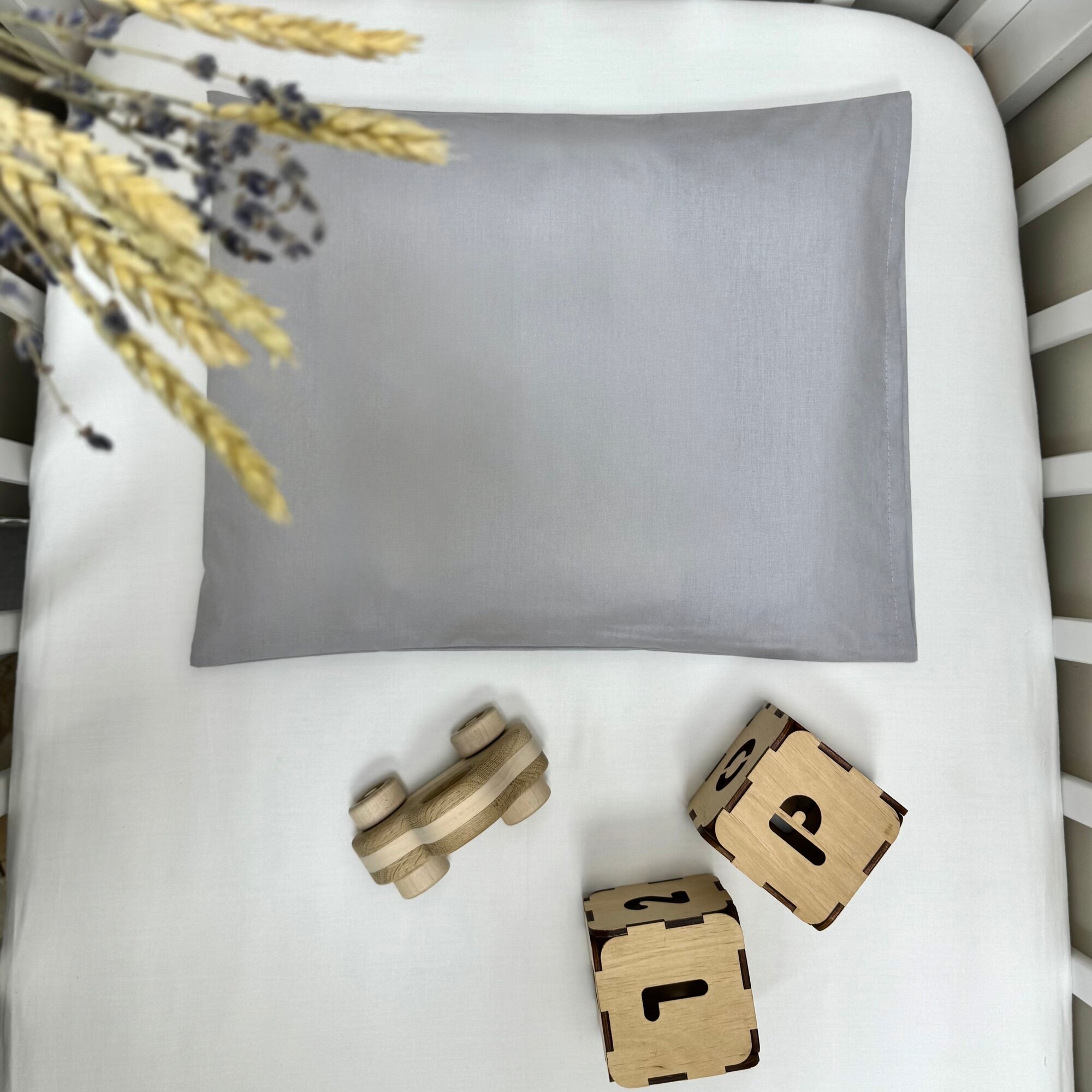 Подушка с наволочкой для новорожденного MamiBro, размер 30х40 см, серый 826 ₽