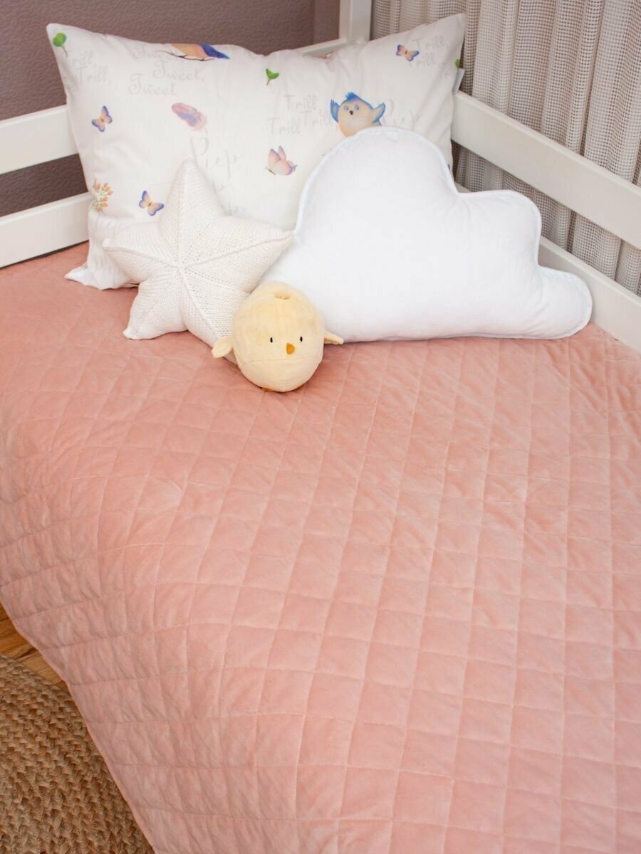 COROCOCO Покрывало детское плюшевое Пудровые зайчата 130х210 см, с хлопковым подкладом информация: