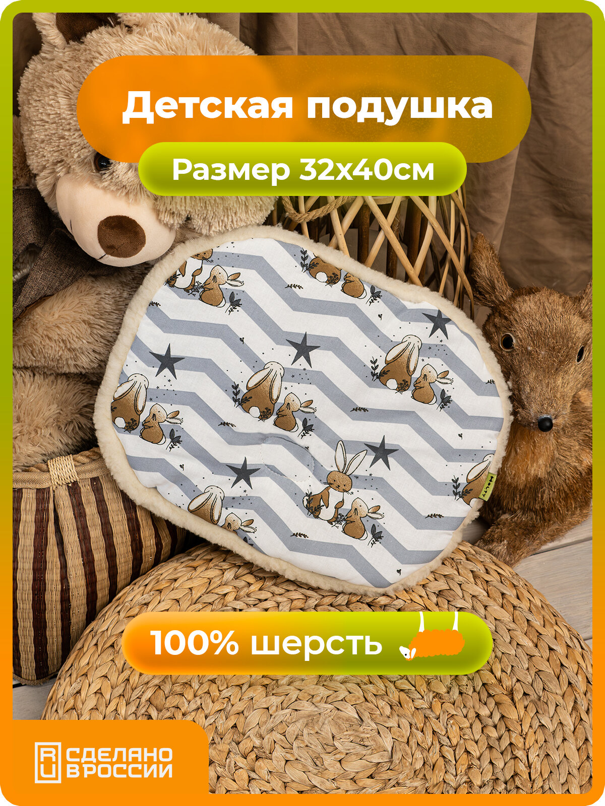 Подушка детская овальная 32х40 Холти шерсть подушка для младенца, белые зайцы 1 069 ₽