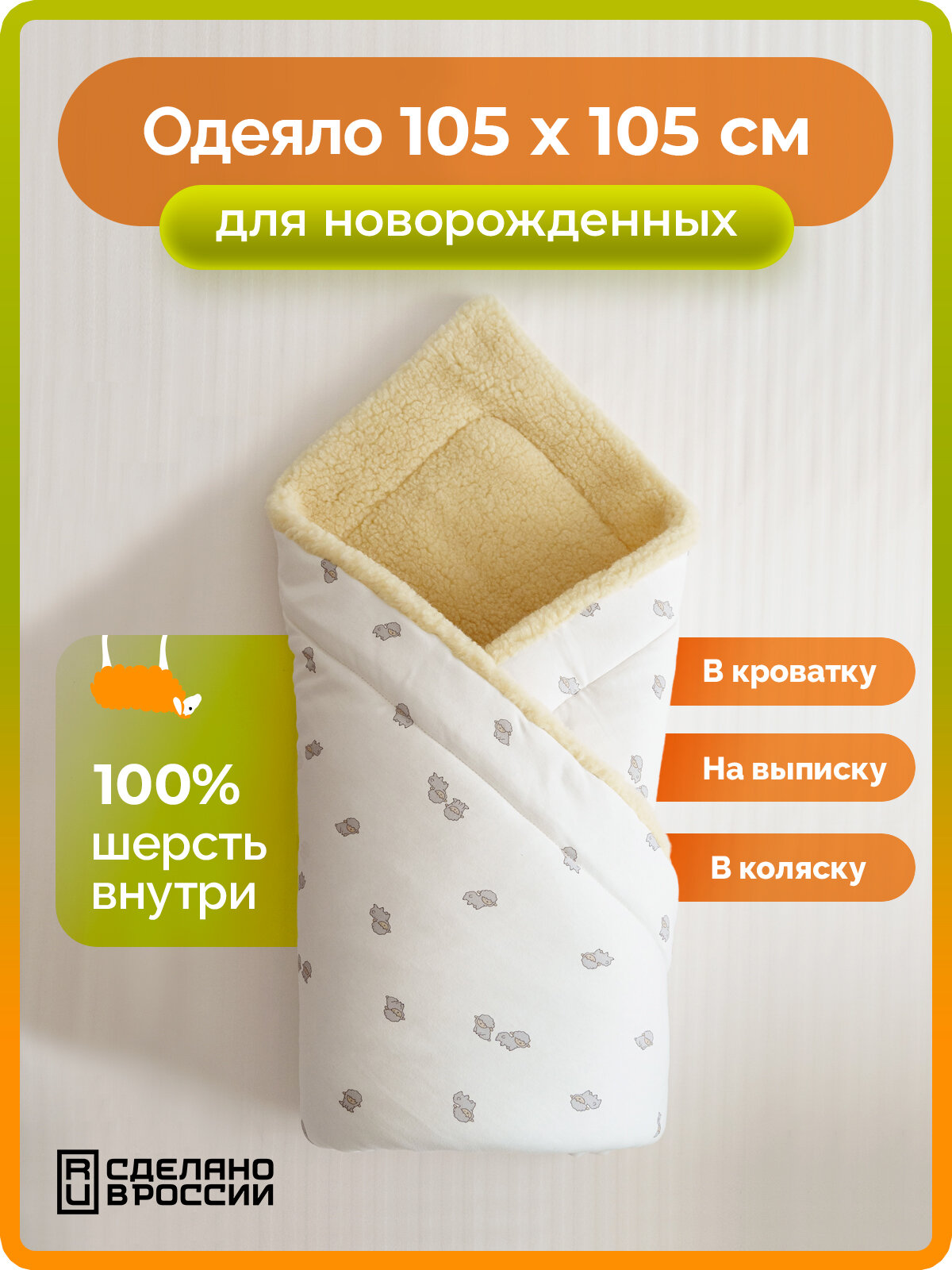 Детское одеяло для новорожденных в кроватку из шерсти Холти Малютка, конверт для малыша 105*105, овечки информация: