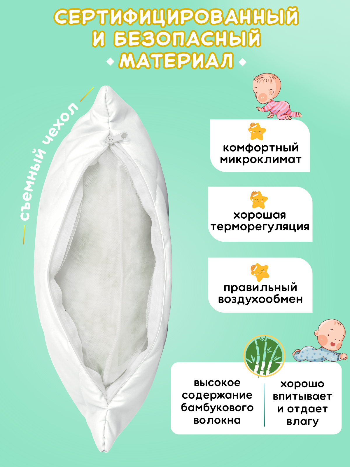 Подушка детская 40х60 см, Бамбук, для детей, для малышей, регулируемая высота, съемный чехол информация: