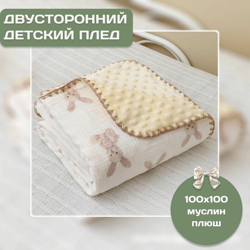 Плед "Муслин" для новорожденных, 100х100см, хлопок, гипоаллергенный, ручная работа информация: