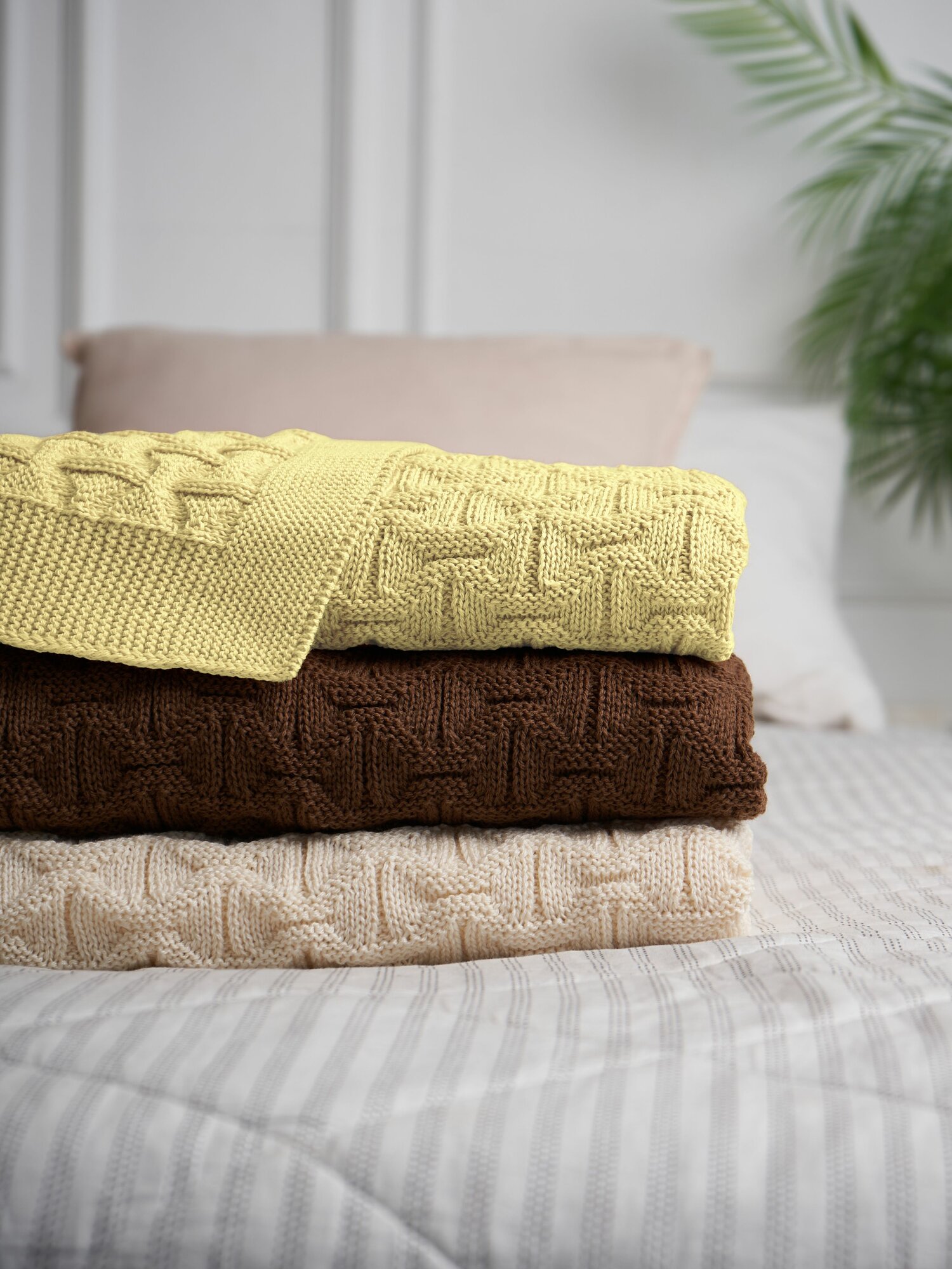 Отзывы на Плед покрывало вязаное хлопковое детское Wave 160х95 см, бледно-желтого цвета