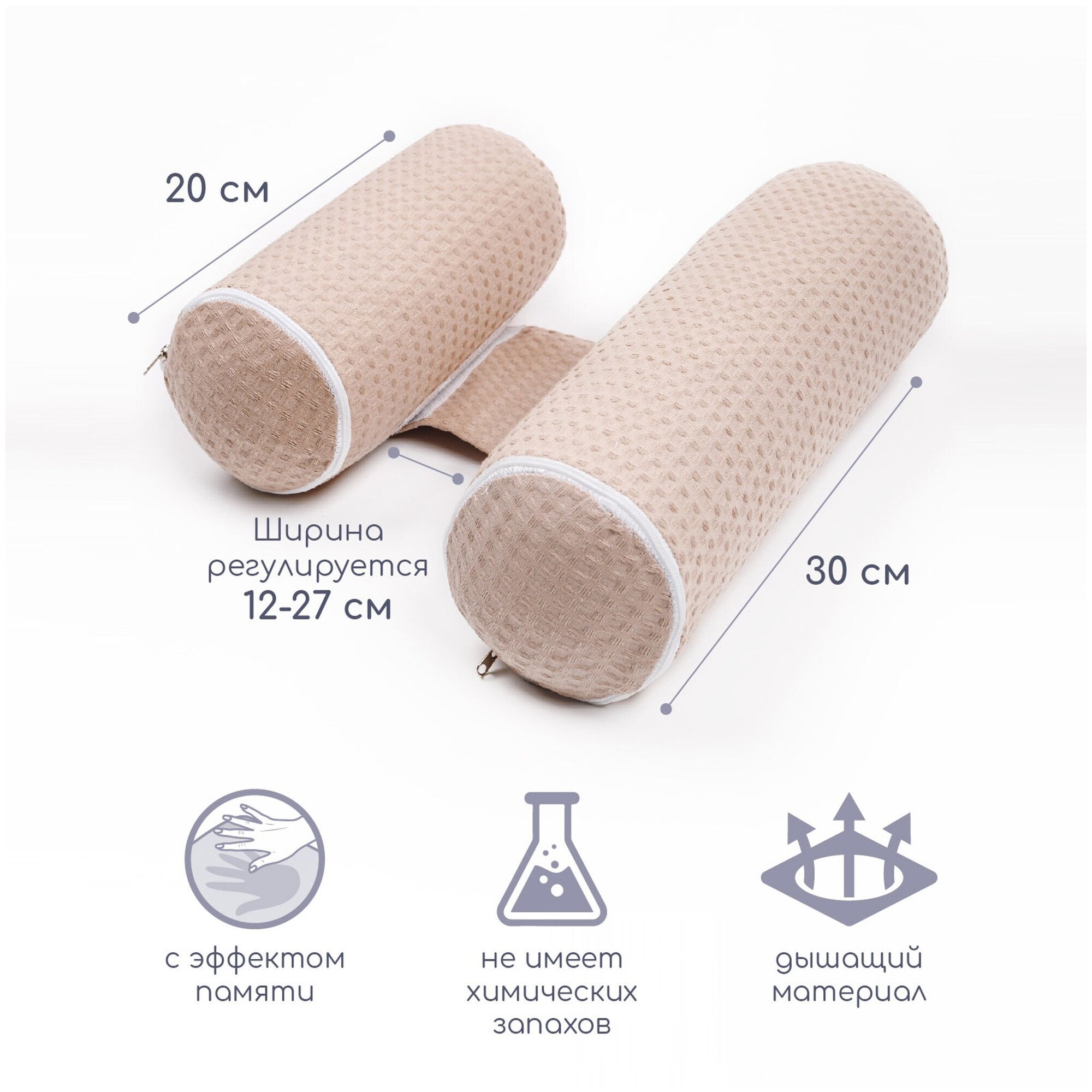 Подушка (валик-позиционер для боковой поддержки) Amarobaby Nature Waffle с лузгой гречихи, бежевый информация:
