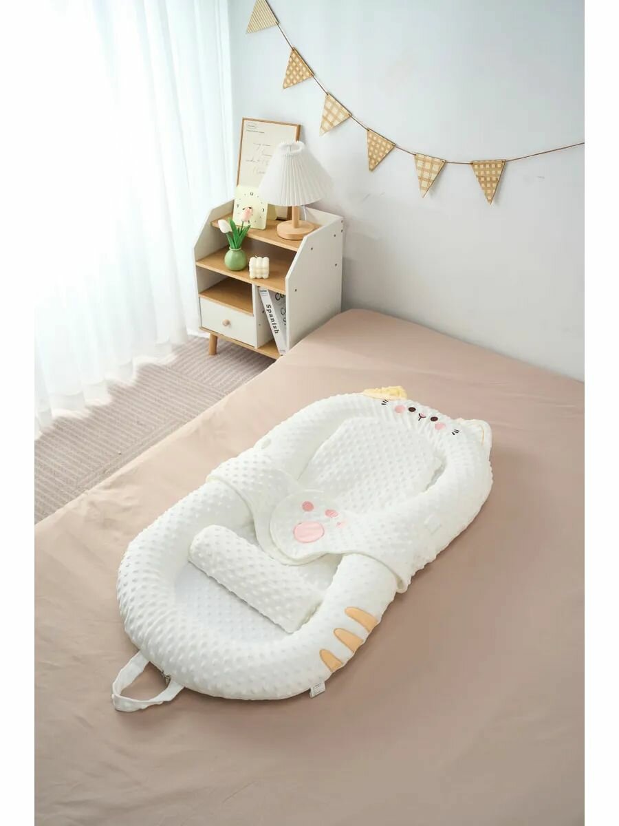 10 цен на Кокон-гнездышко "Котик", белый, для новорожденных, полипропиленовый хлопок