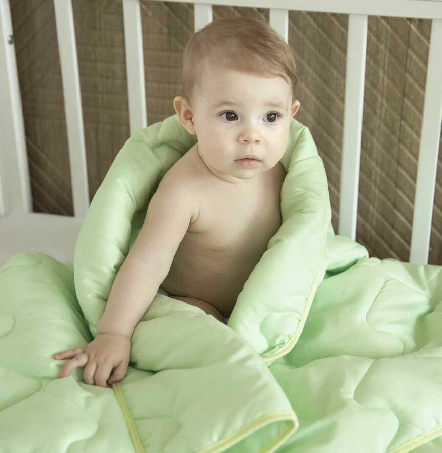 Одеяло детское 110х140 зеленое/ Всесезонное/ детское одеяло / Стеганное одеяло для ребенка/бамбук