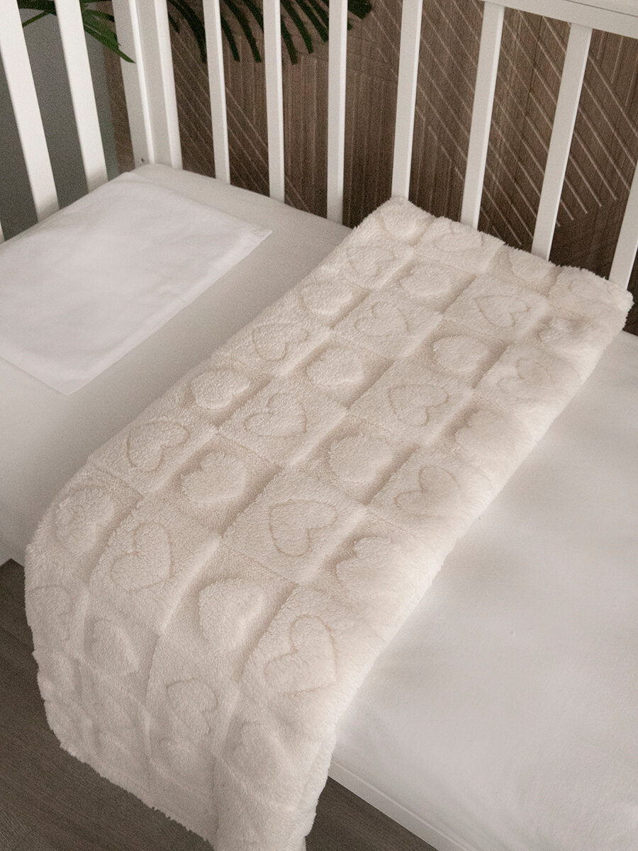 10 цен на Плед для новорожденного 100х140 пушистый детский в кроватку коляску , Сердечки, Tessolo Home, белый однотонный