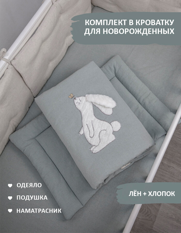10 цен на Комплект детское постельное белье в кроватку Зайчонок одеяло 70х100 наматрасник 60х120 подушка