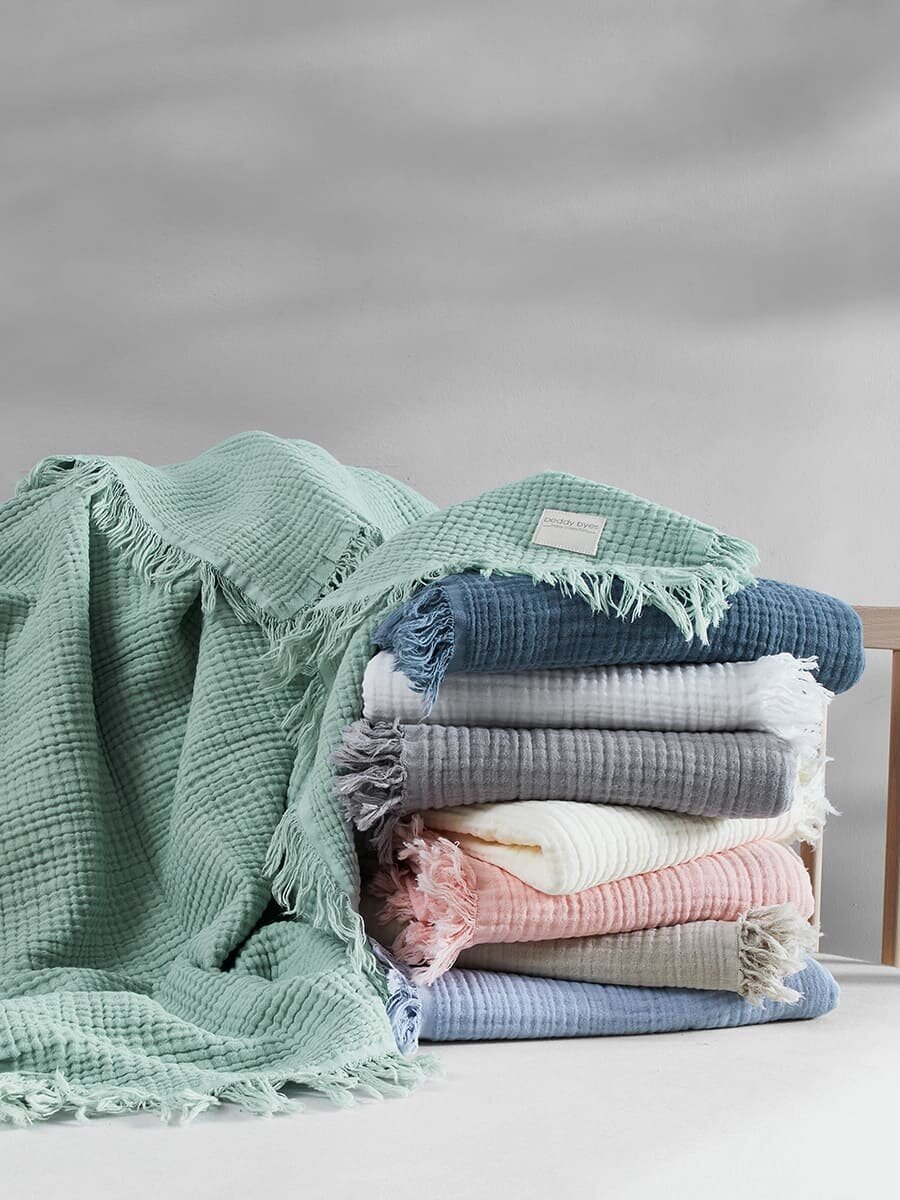Отзывы на Плед для детей BEDDY Byes (BB 321) из органической муслиновой ткани с бахромой, 100х80, мятный