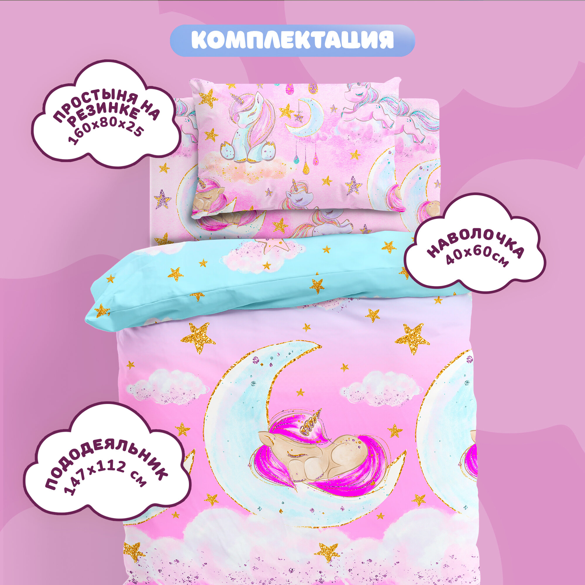 Детское постельное белье в кроватку Juno, Поплин, на резинке 160х80 см, нав. 40х60, Sleep unicorn информация: