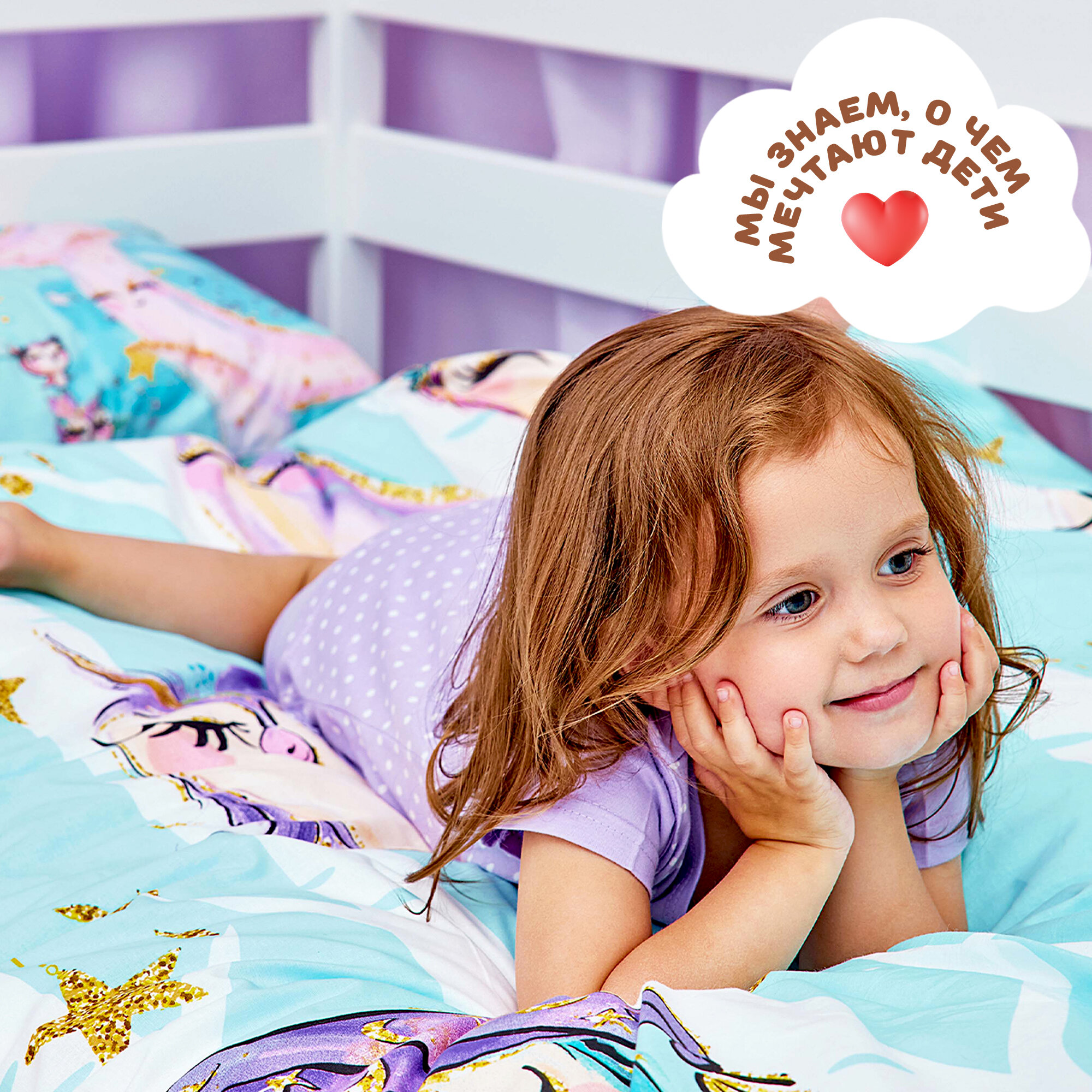 Детское постельное белье в кроватку Juno, Поплин, на резинке 160х80 см, нав. 40х60, Sleep unicorn 1 214 ₽
