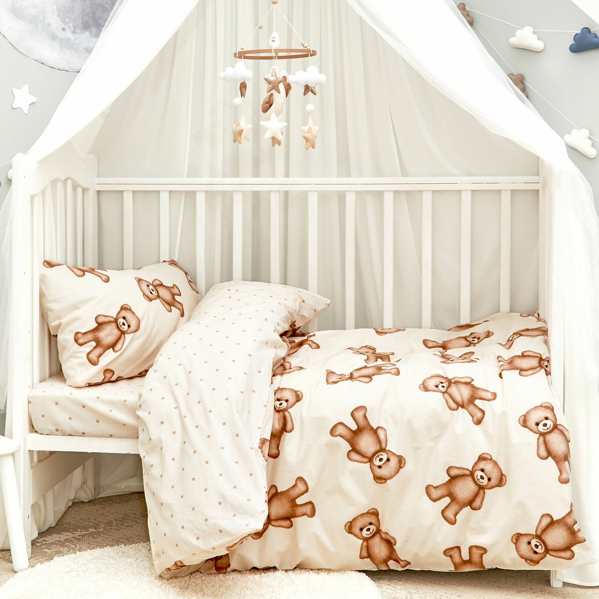 Детское постельное белье в кроватку для новорожденного Juno, Поплин, нав. 40х60, Лунный мишка 1 010 ₽