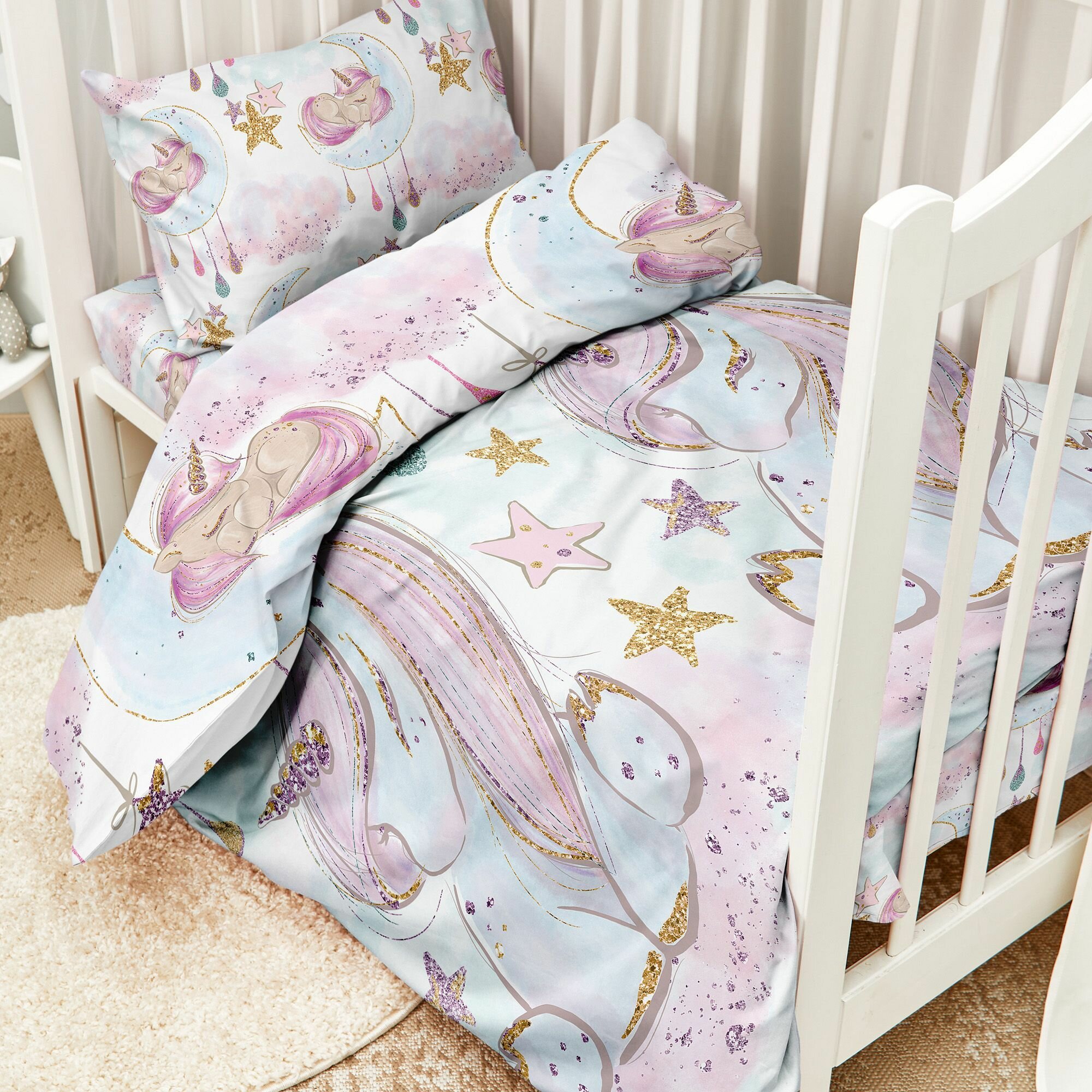 10 цен на Детское постельное белье в кроватку для новорожденного Juno, Поплин, нав. 40х60, Unicorns