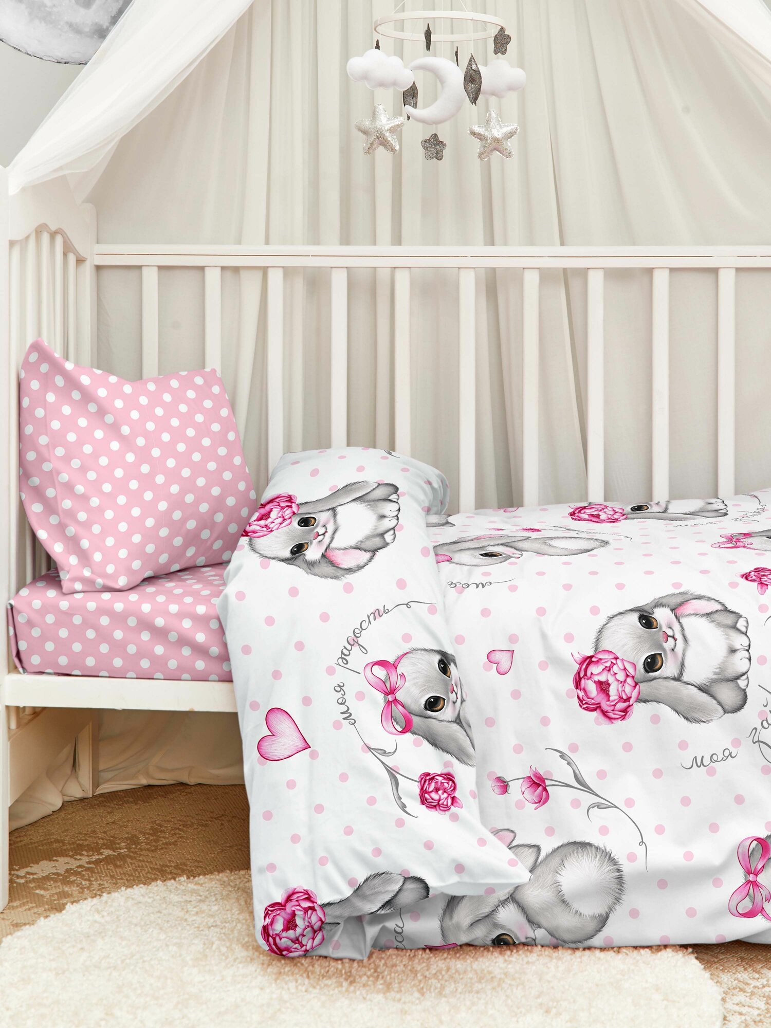 10 цен на Детское постельное белье в кроватку для новорожденного Juno, Поплин, нав. 40х60, Милые зайки