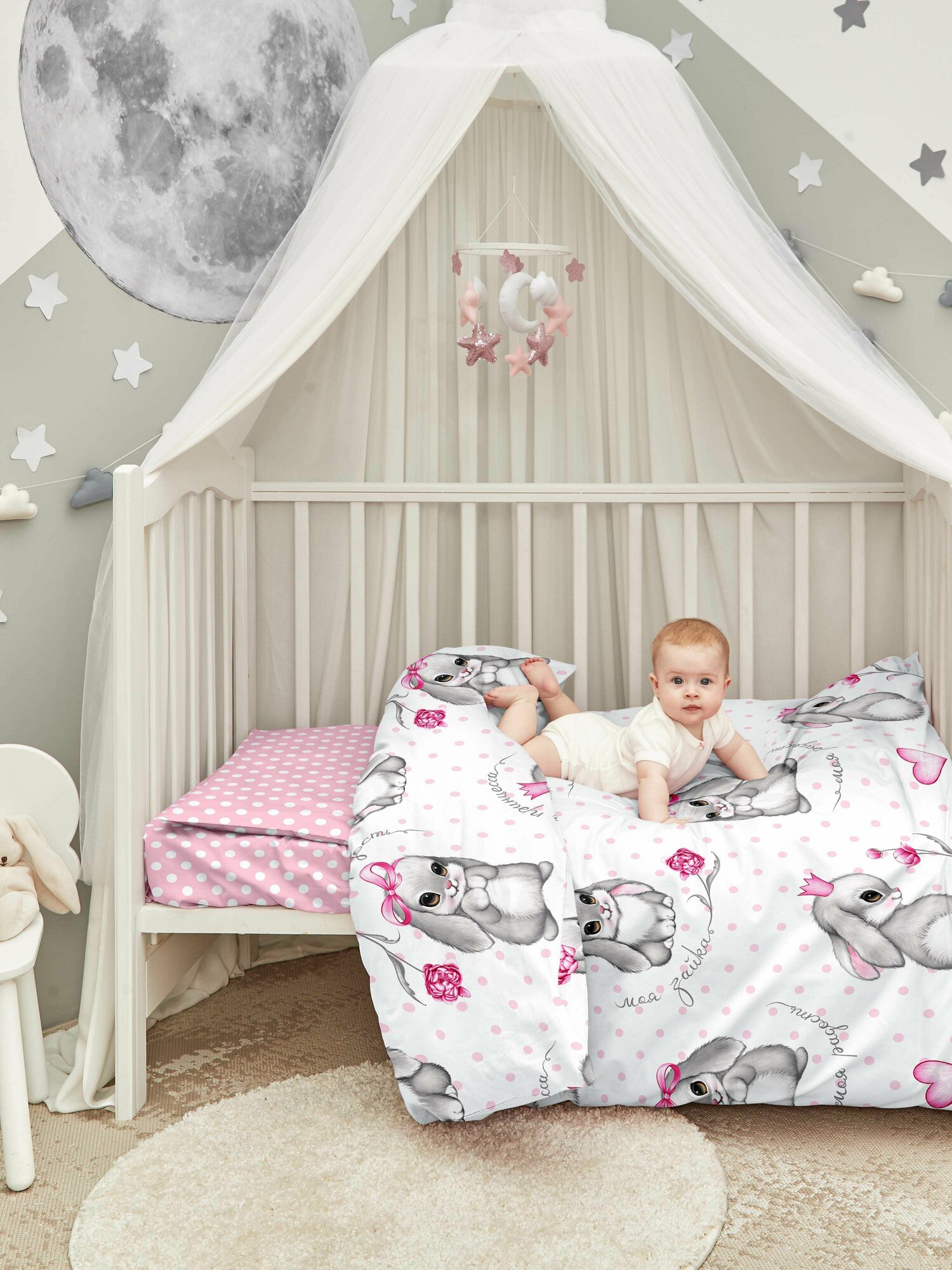 Детское постельное белье в кроватку для новорожденного Juno, Поплин, нав. 40х60, Зайчата 917 ₽