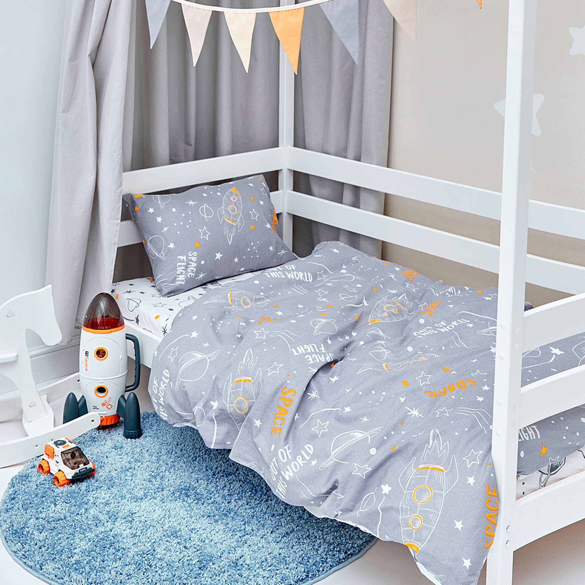 Детское постельное белье в кроватку Juno, Поплин, для матрасов 160х80 см, нав. 40х60, Space grey информация: