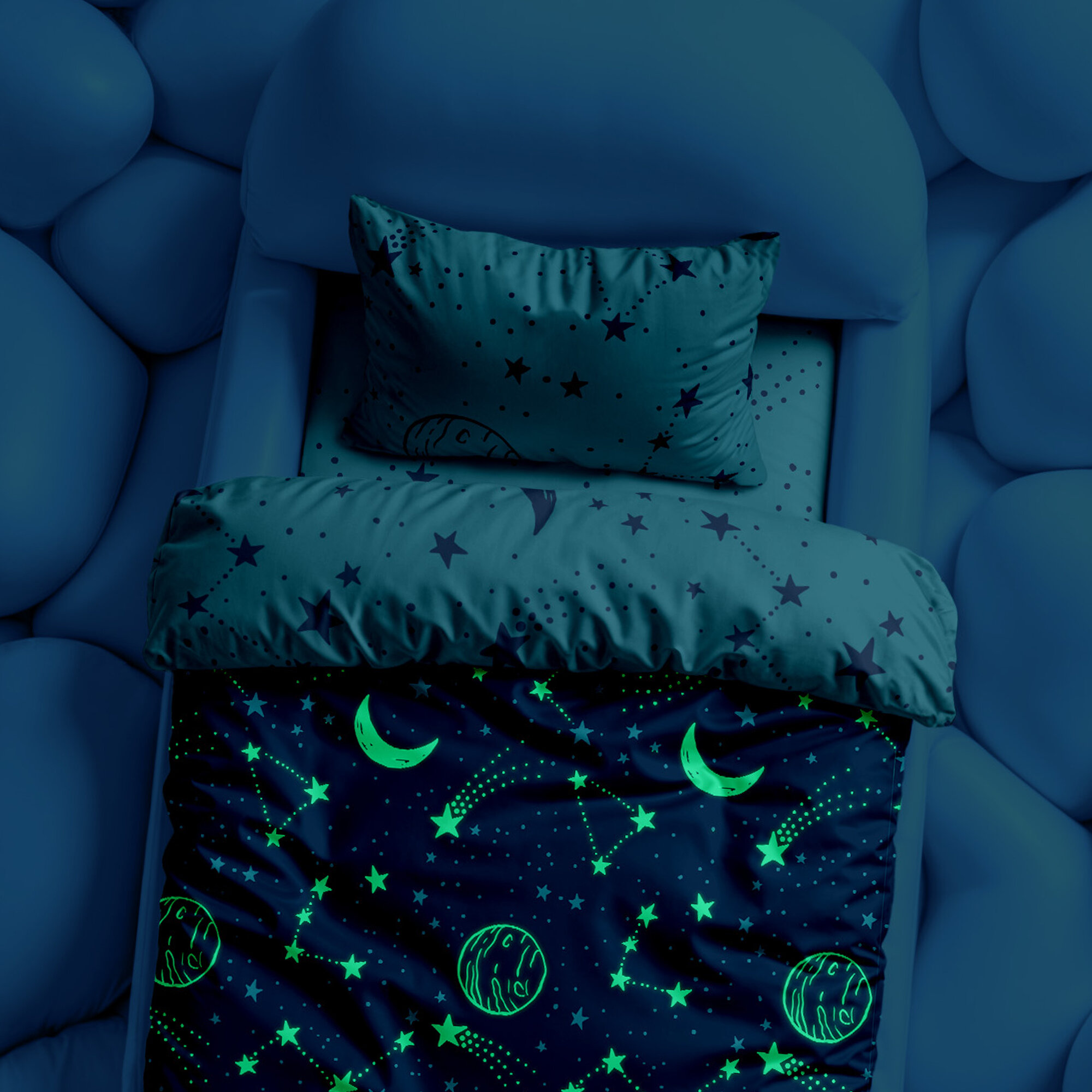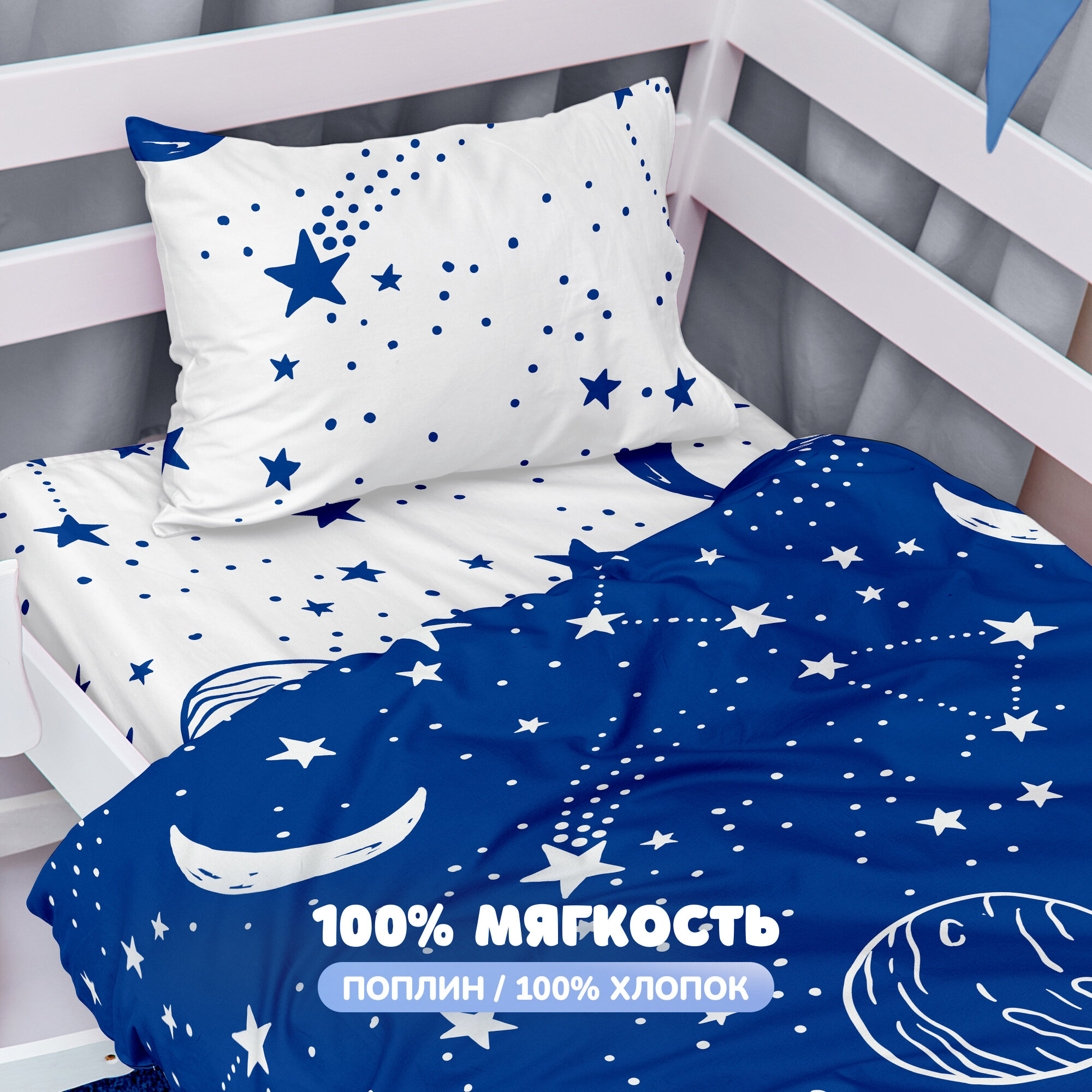 Детское постельное белье в кроватку Juno, Поплин, для матрасов 160х80 см, нав. 40х60, Звездное небо, светится в темноте информация: