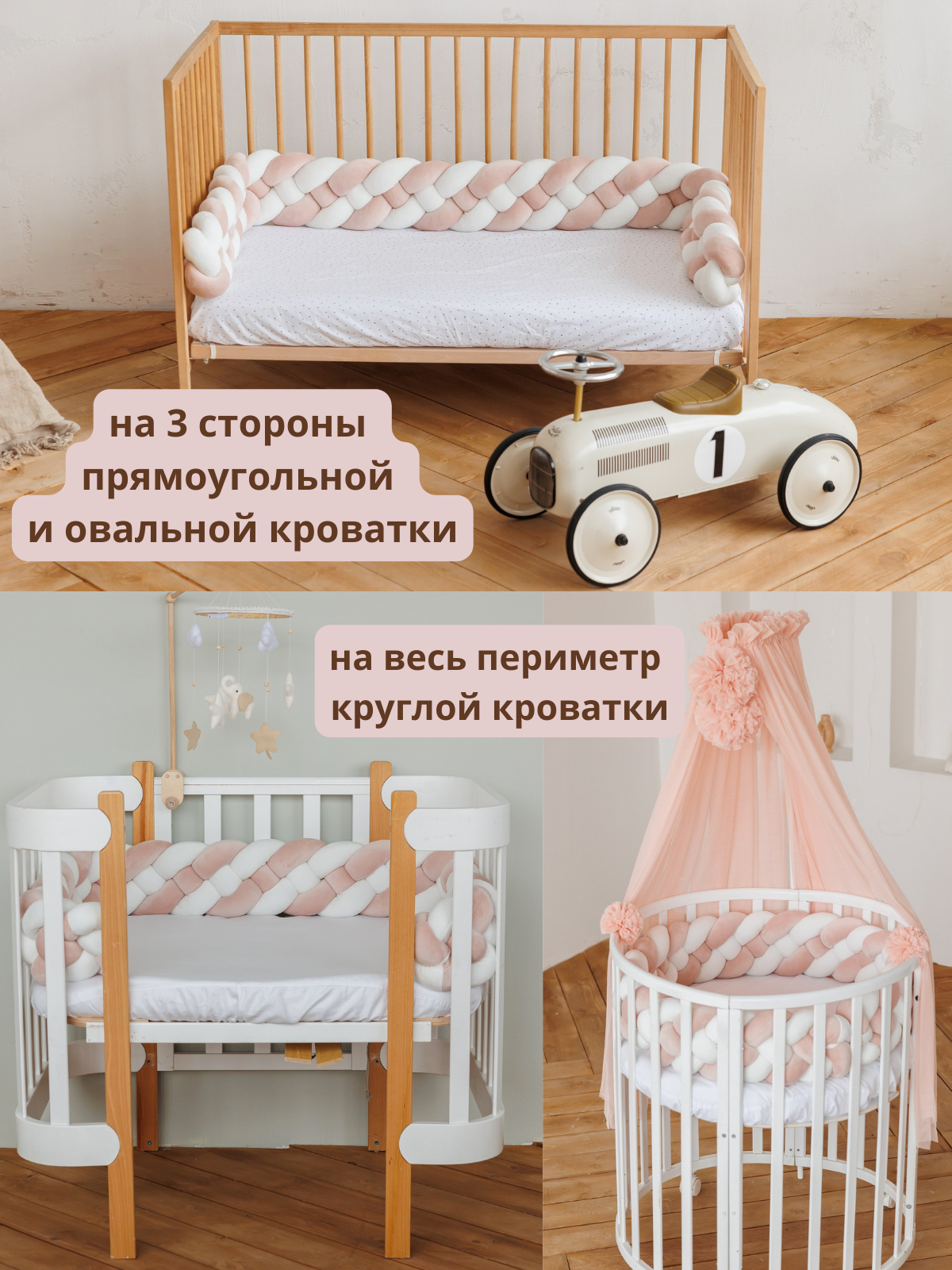 Отзывы на Бортик для кровати детской "Косичка" 230см цвет Бело-Пудровый (коса из 4 прядей)
