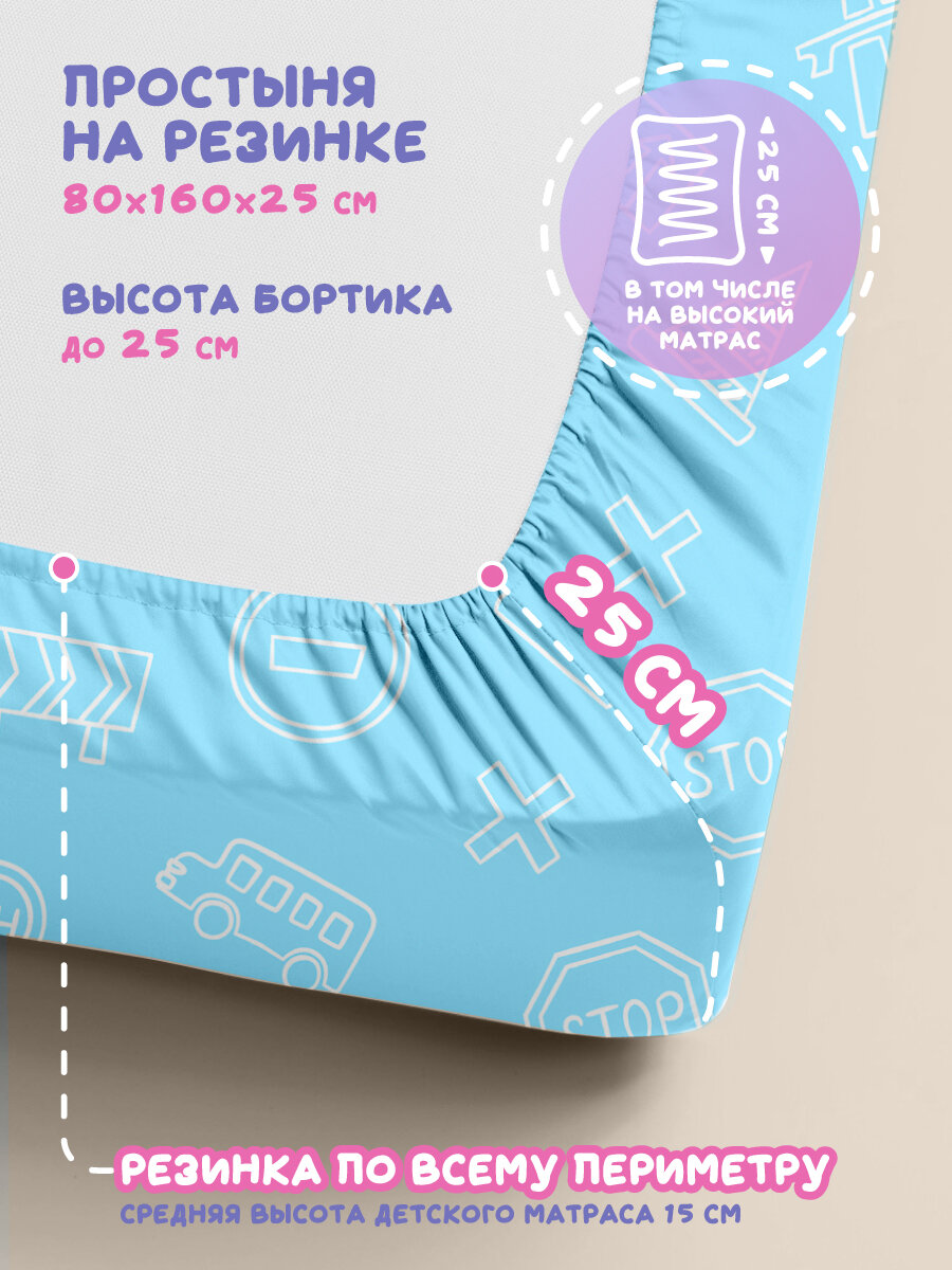 10 цен на Детское постельное белье Василек юниор на резинке 160х80 см, Поплин, Машинки