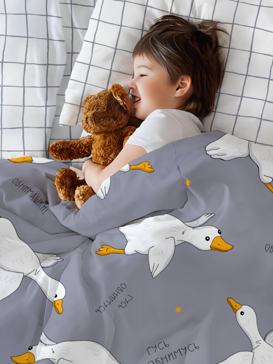 Детское постельное белье Василек юниор на резинке 160х80 см, Поплин, Гусь обнимусь информация: