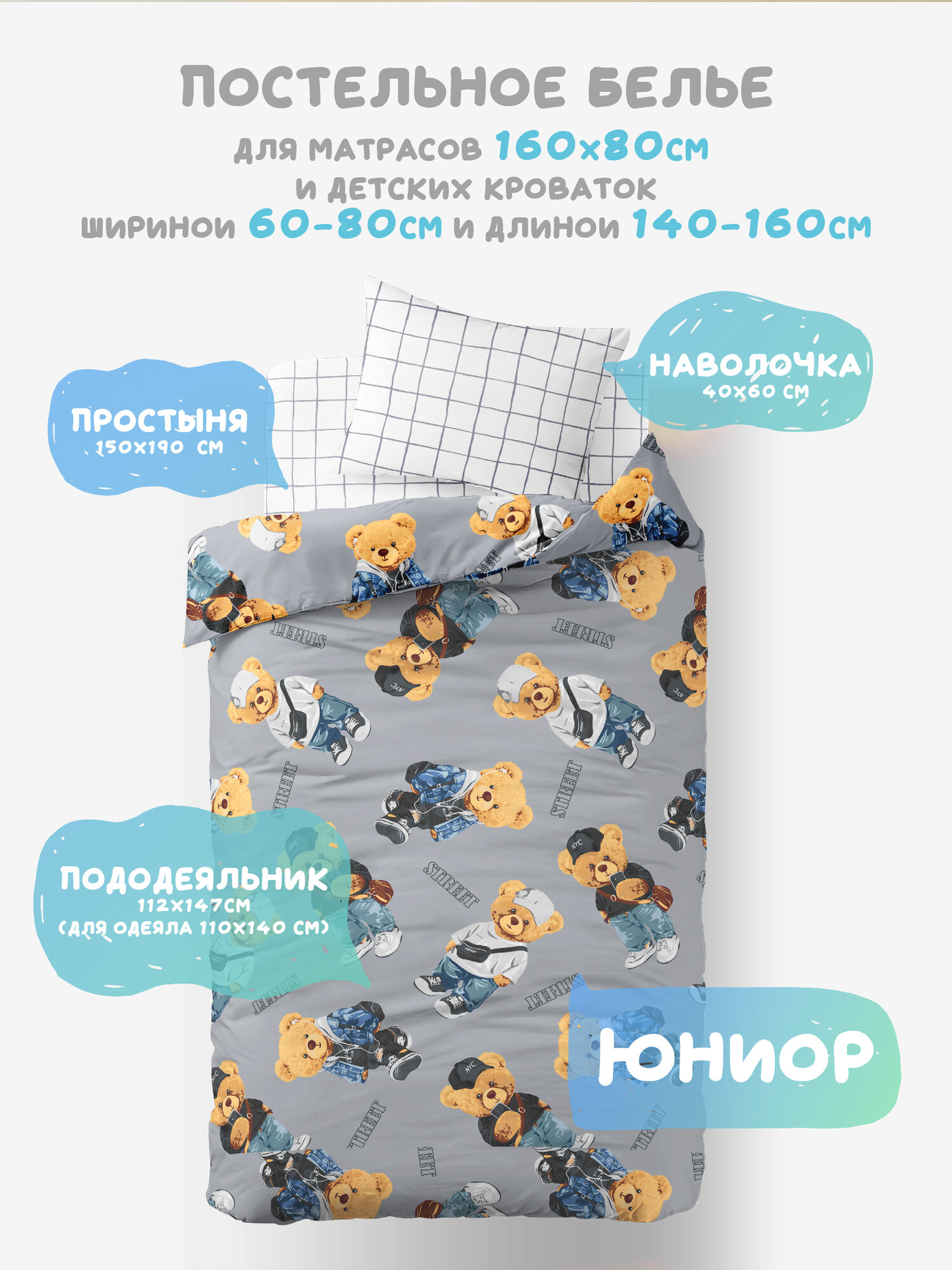 Детское постельное белье Василек юниор, Поплин, хлопок 100%, Тедди информация: