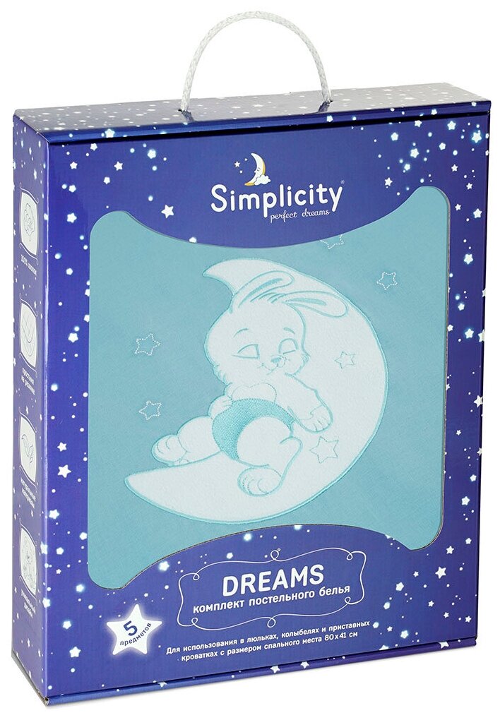 Комплект постельного белья Simplicity Dreams, Bunny Night 5 предметов (Голубой) информация: