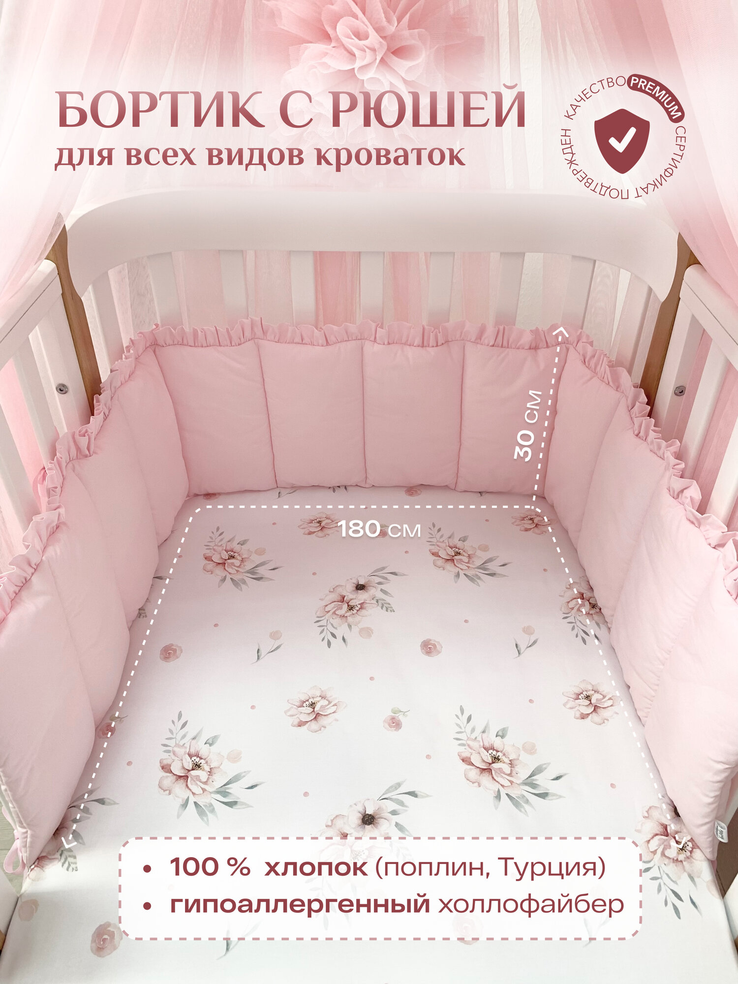 10 цен на Бортик с рюшей в кроватку для новорожденных, цвет - розовый
