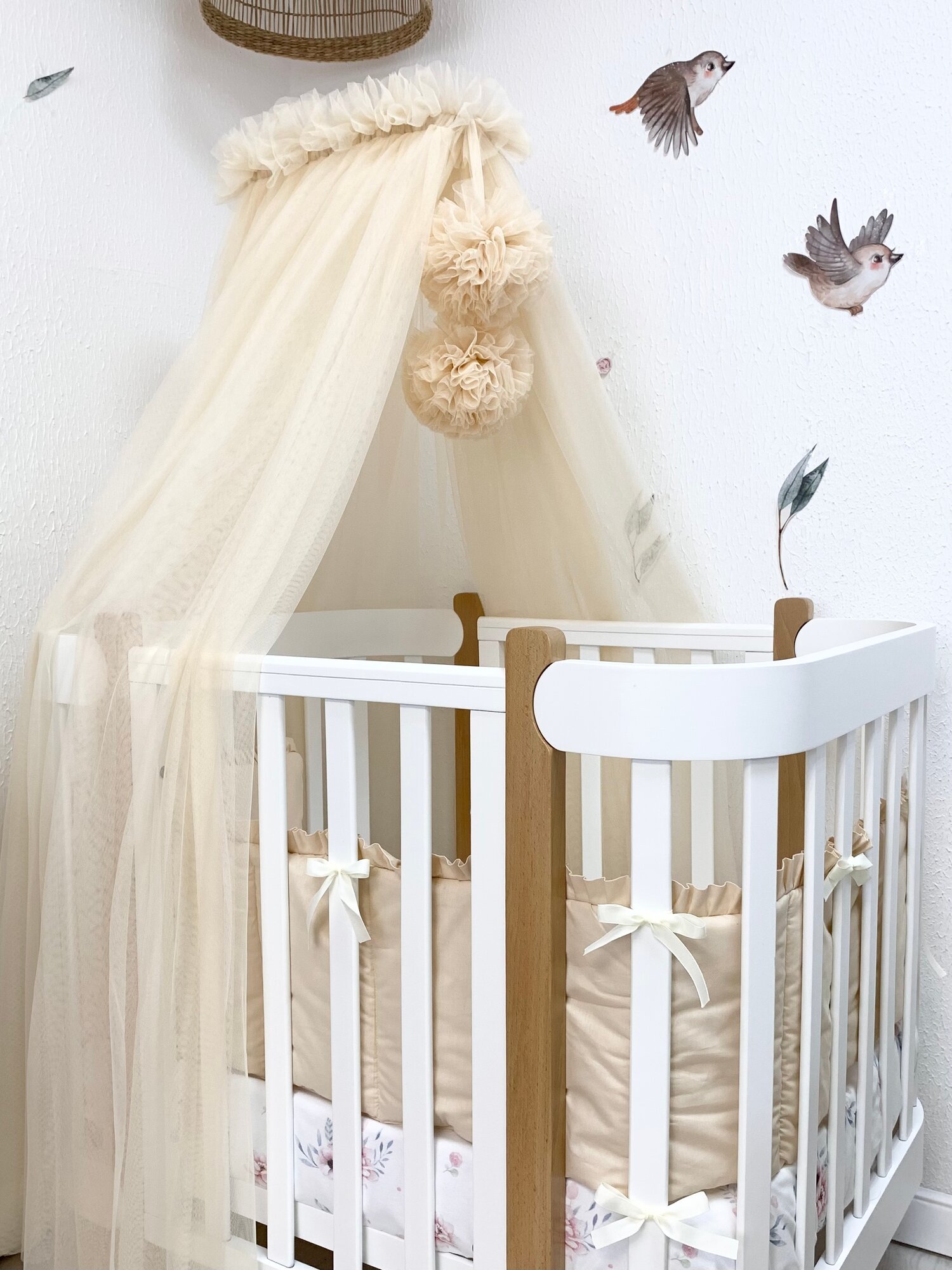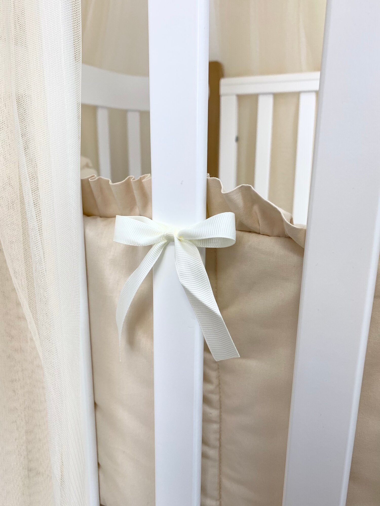 Бортик с рюшей в кроватку для новорожденных, цвет - светло-бежевый информация: