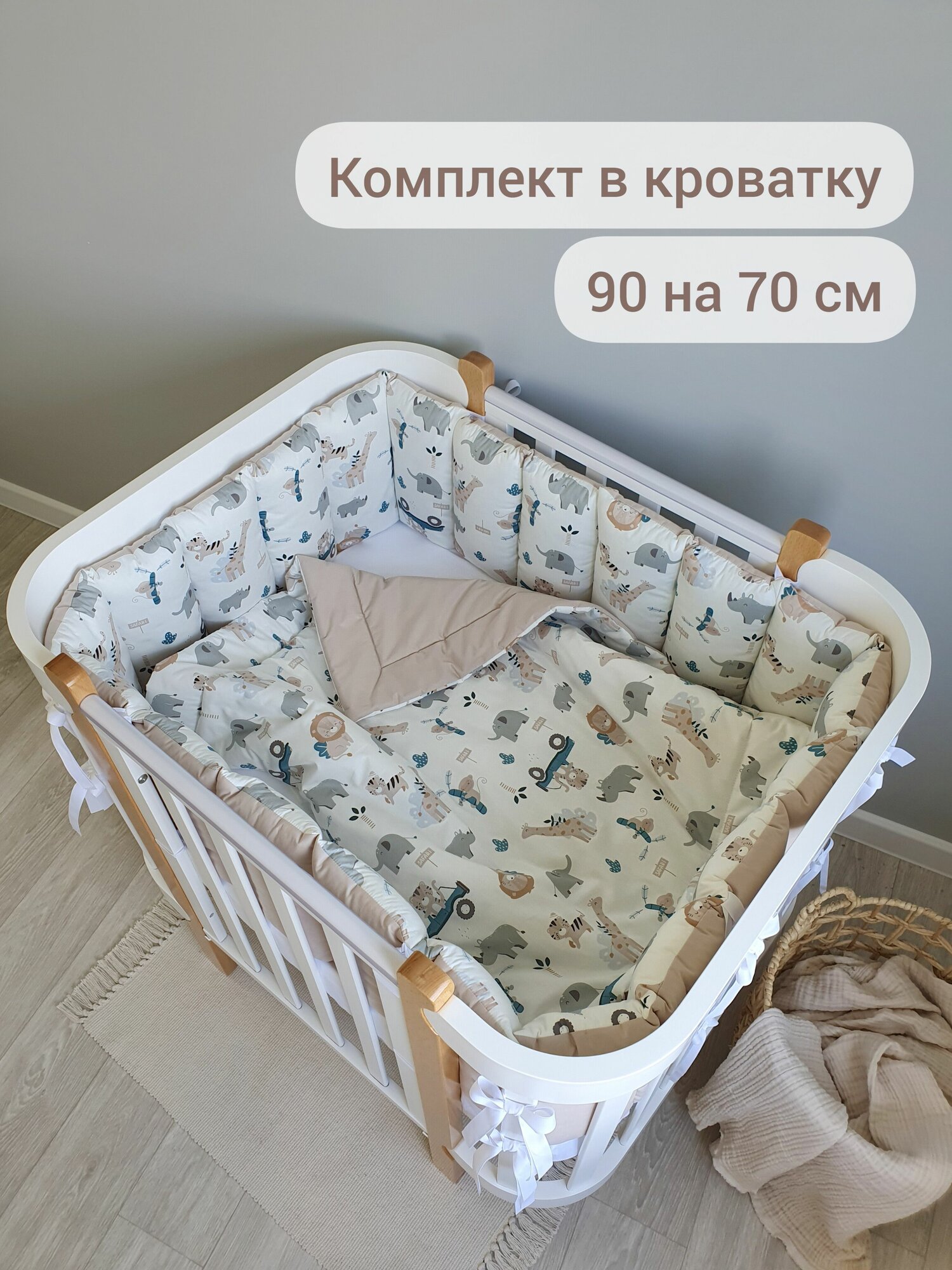 Бортики в кроватку для новорожденных Happy Baby 90 на 70, комплект с одеялом и простыней, DALION информация: